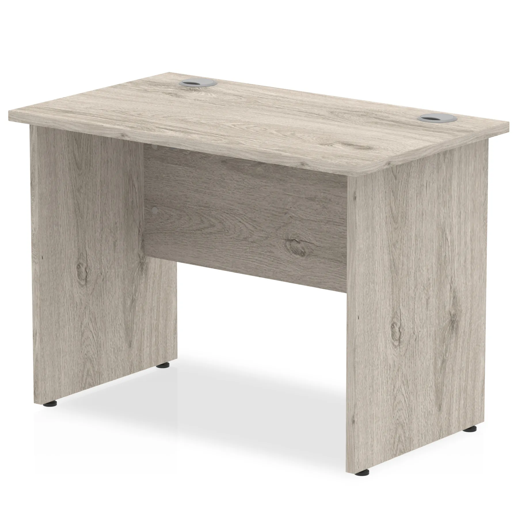 Impulse contract desk | 25mm tops | Heat resistant melamine finish | 18mm modesty panels | 2mm protective abs edging | Panel end legs | 2 cable ports | Height adjustable feet | Steel to steel fixings | 2 modesty panels slots | Deep set modesty panel (5″) allows for compatibility of most screen clamp fittings | Weight Capacity 135Kg