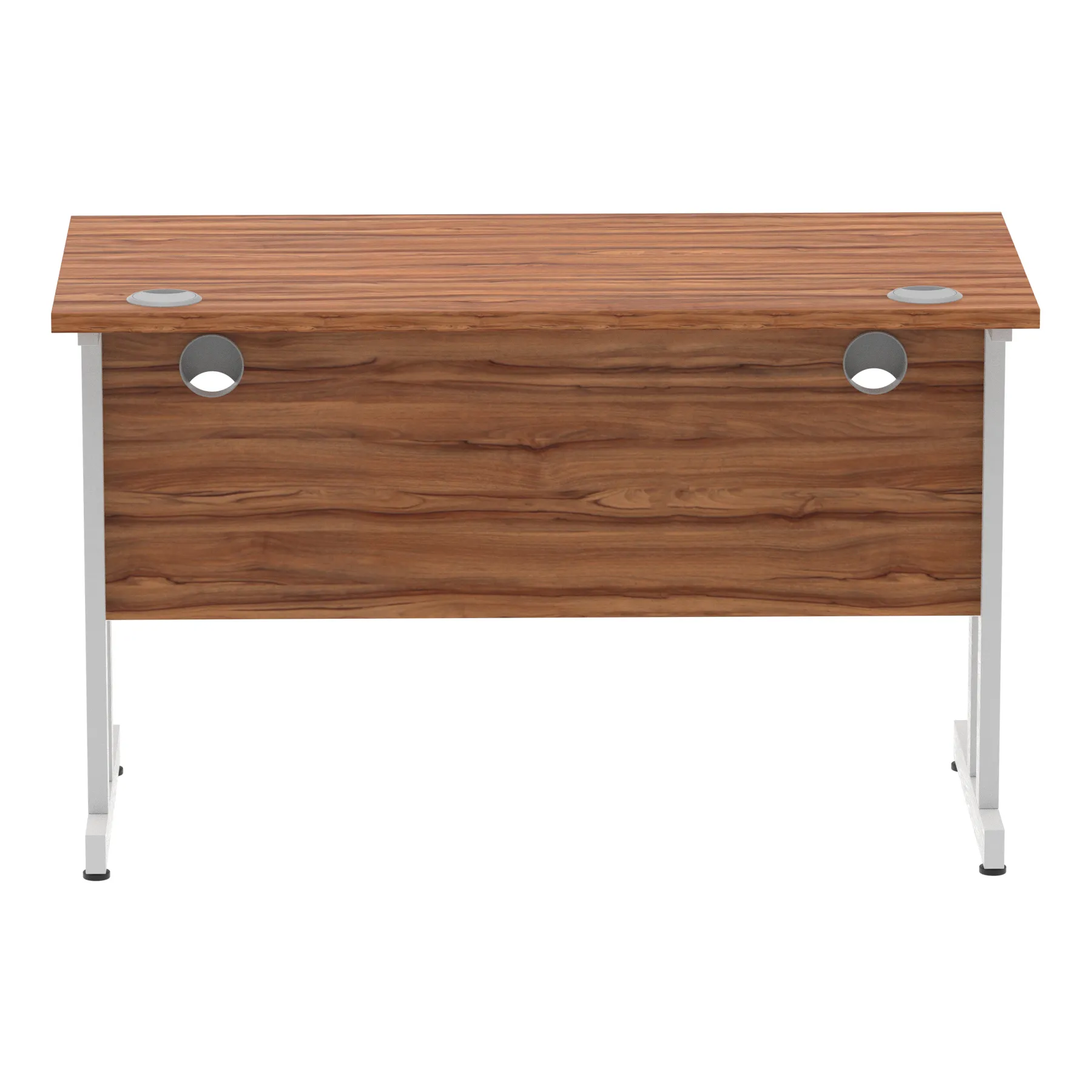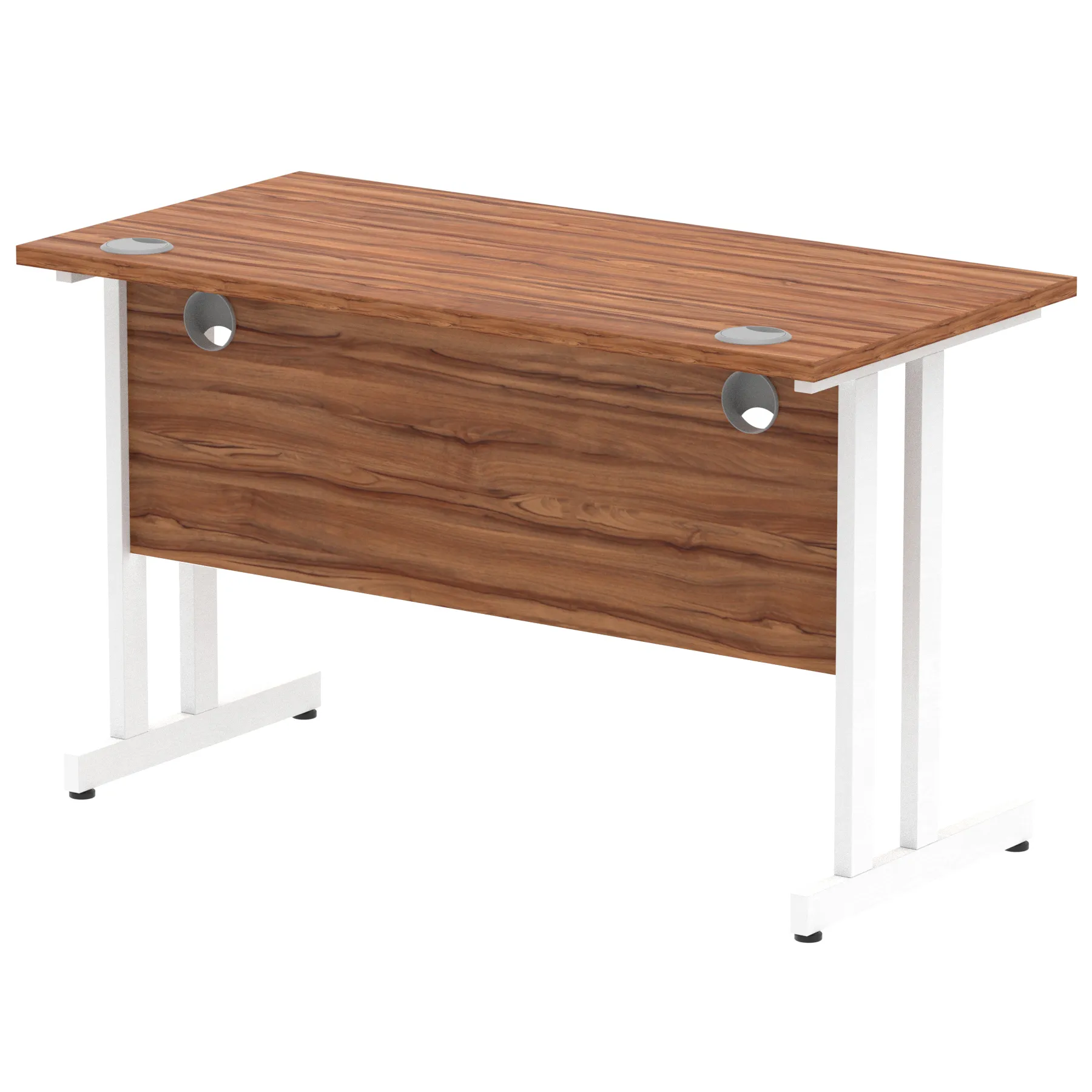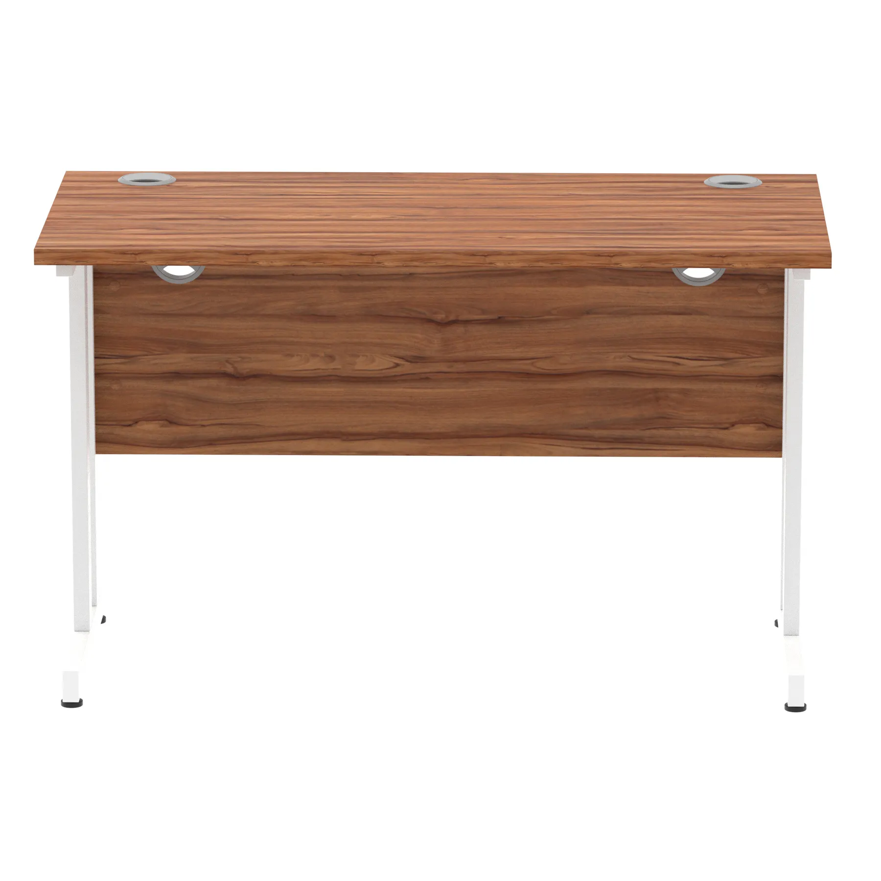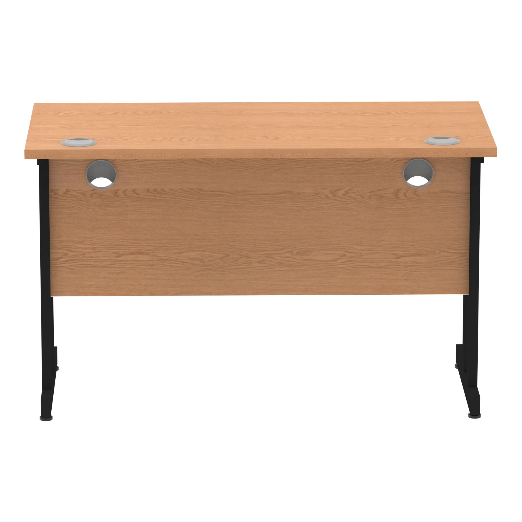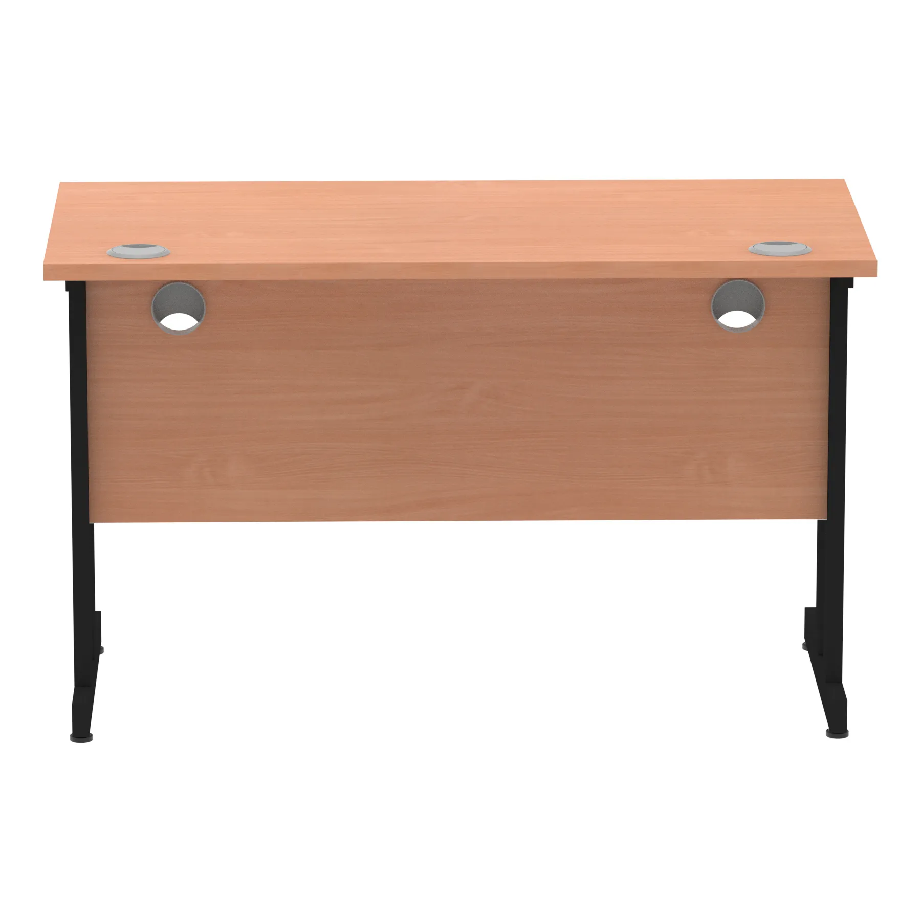 Impulse contract desk | 25mm tops | Heat resistant melamine finish | 18mm modesty panels | 2mm protective abs edging | Silver coated double strut legs | 2 cable ports | Height adjustable feet | Steel to steel fixings | 2 modesty panels slots| Deep set modesty panel (5″) allows for compatibility of most screen clamp fittings | Weight Capacity 135Kg