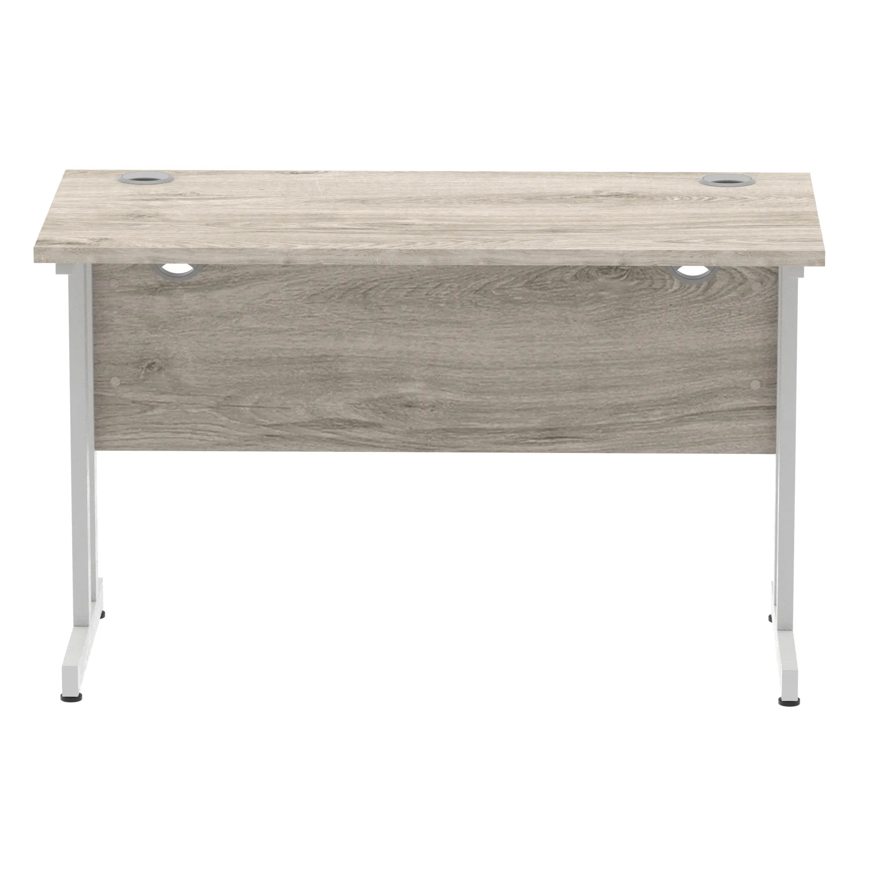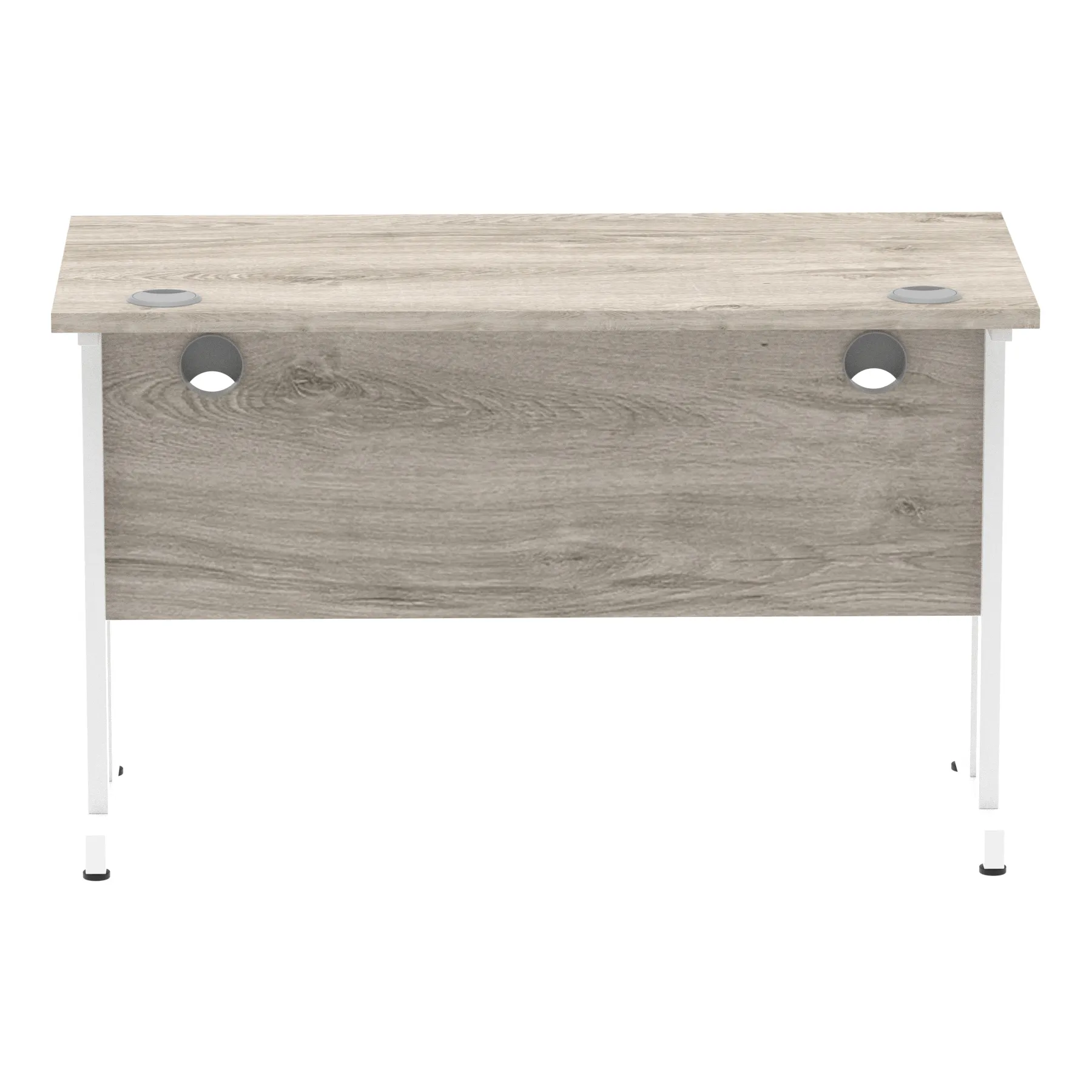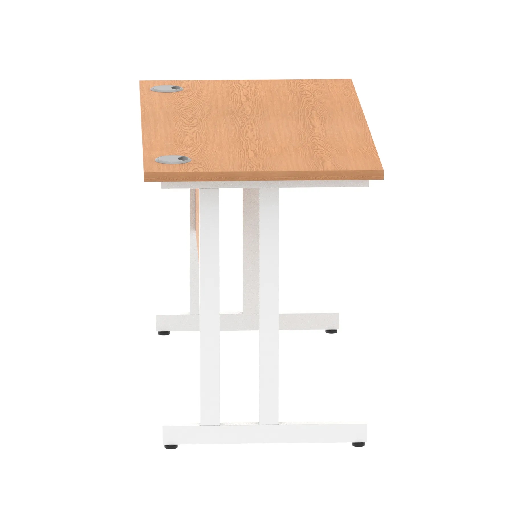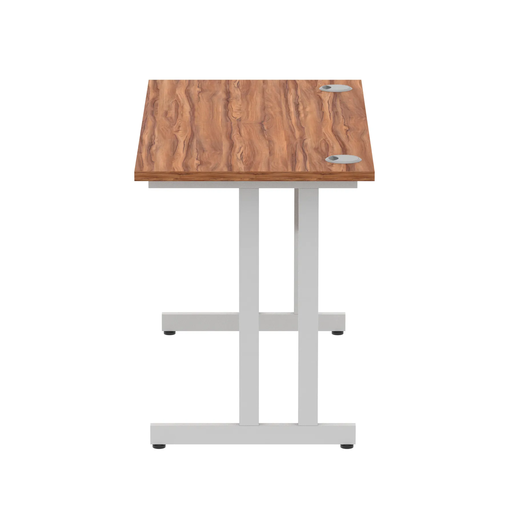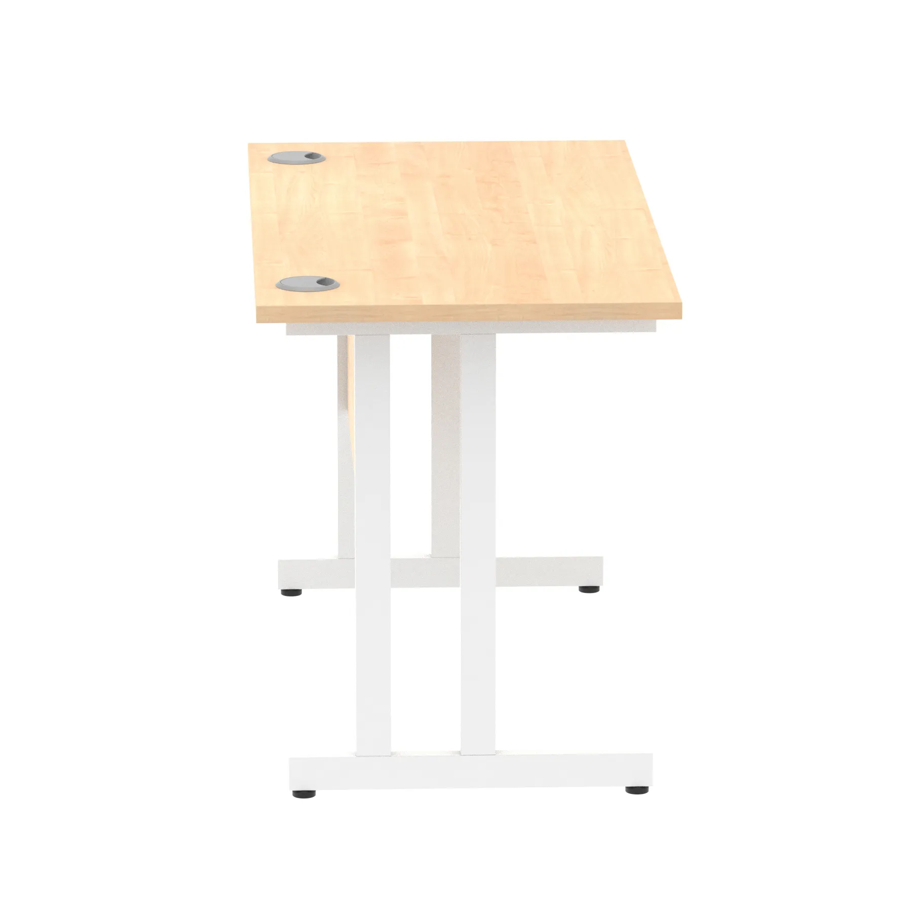 Impulse contract desk | 25mm tops | Heat resistant melamine finish | 18mm modesty panels | 2mm protective abs edging | Silver coated double strut legs | 2 cable ports | Height adjustable feet | Steel to steel fixings | 2 modesty panels slots| Deep set modesty panel (5″) allows for compatibility of most screen clamp fittings | Weight Capacity 135Kg