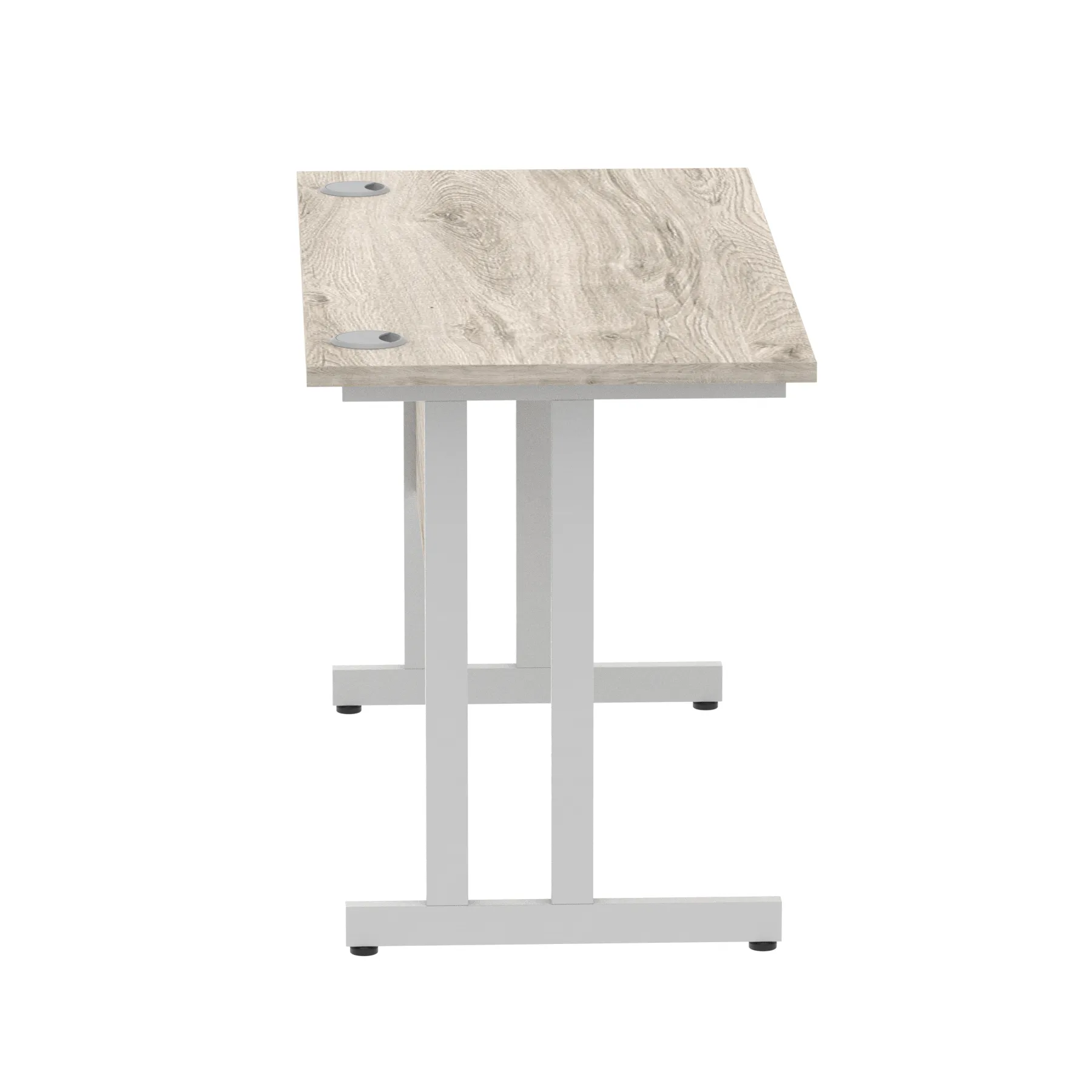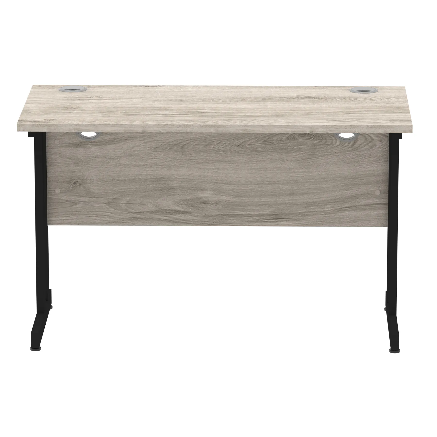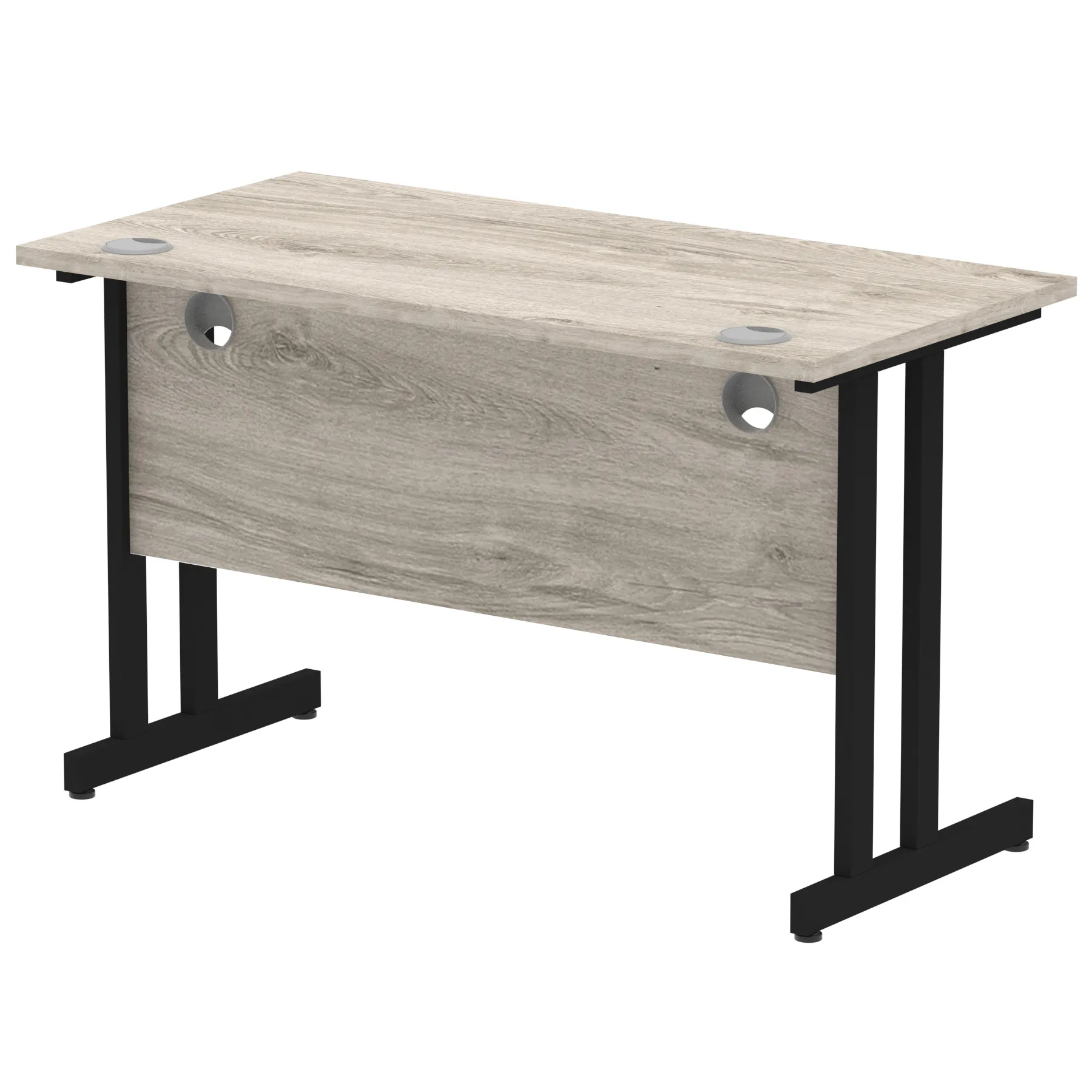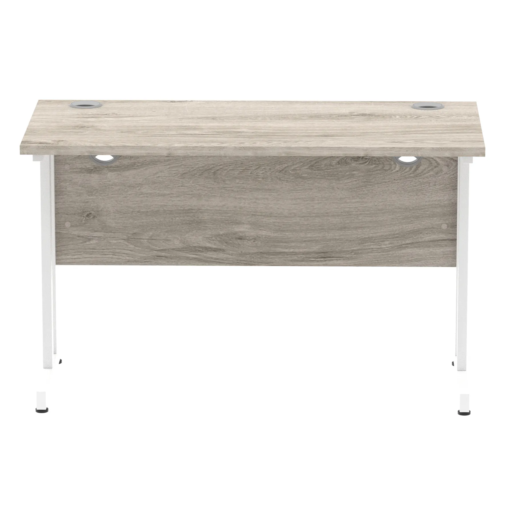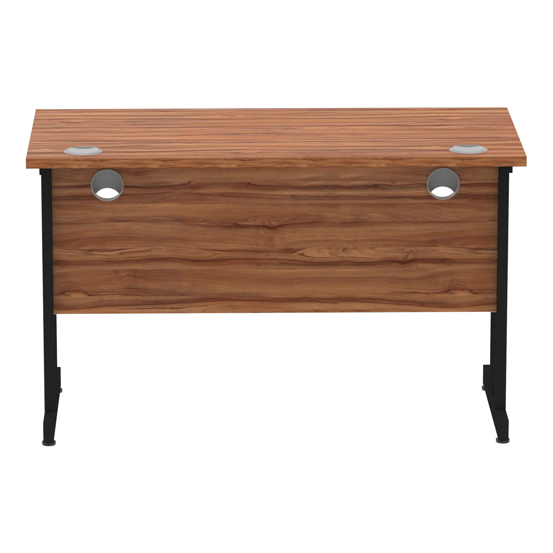 Impulse contract desk | 25mm tops | Heat resistant melamine finish | 18mm modesty panels | 2mm protective abs edging | Silver coated double strut legs | 2 cable ports | Height adjustable feet | Steel to steel fixings | 2 modesty panels slots| Deep set modesty panel (5″) allows for compatibility of most screen clamp fittings | Weight Capacity 135Kg