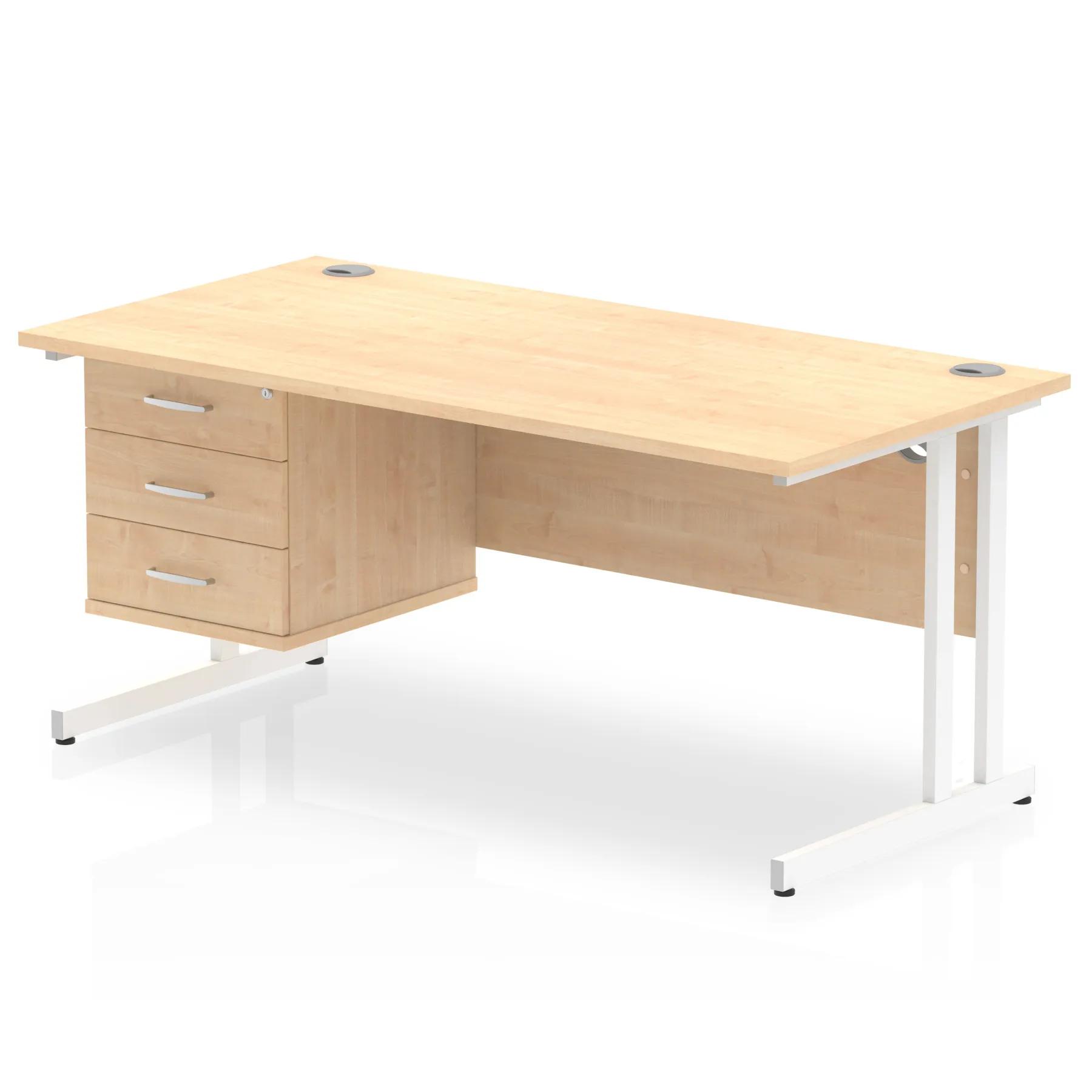 Impulse 1600mm Cantilever Straight Desk With Single Fixed Pedestal