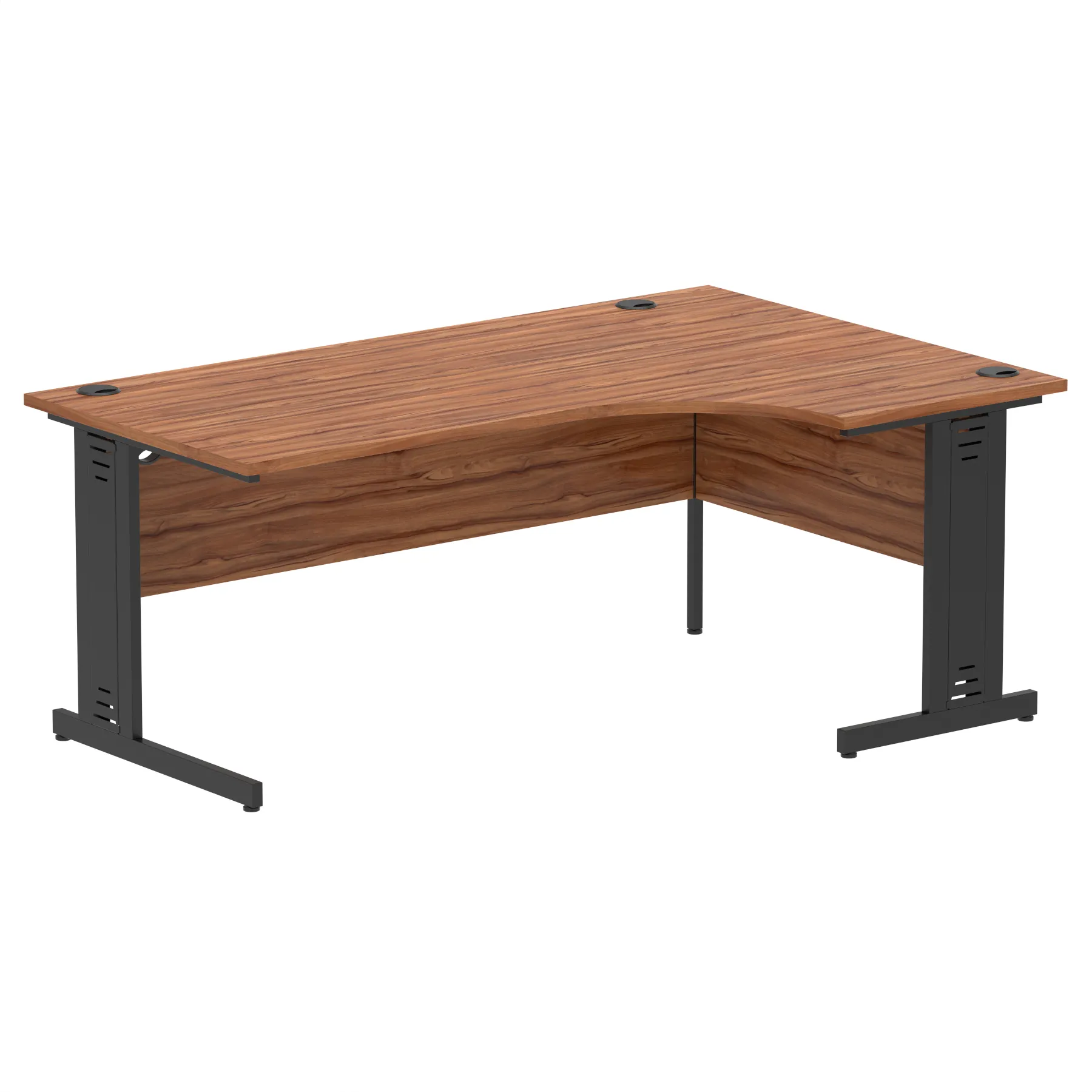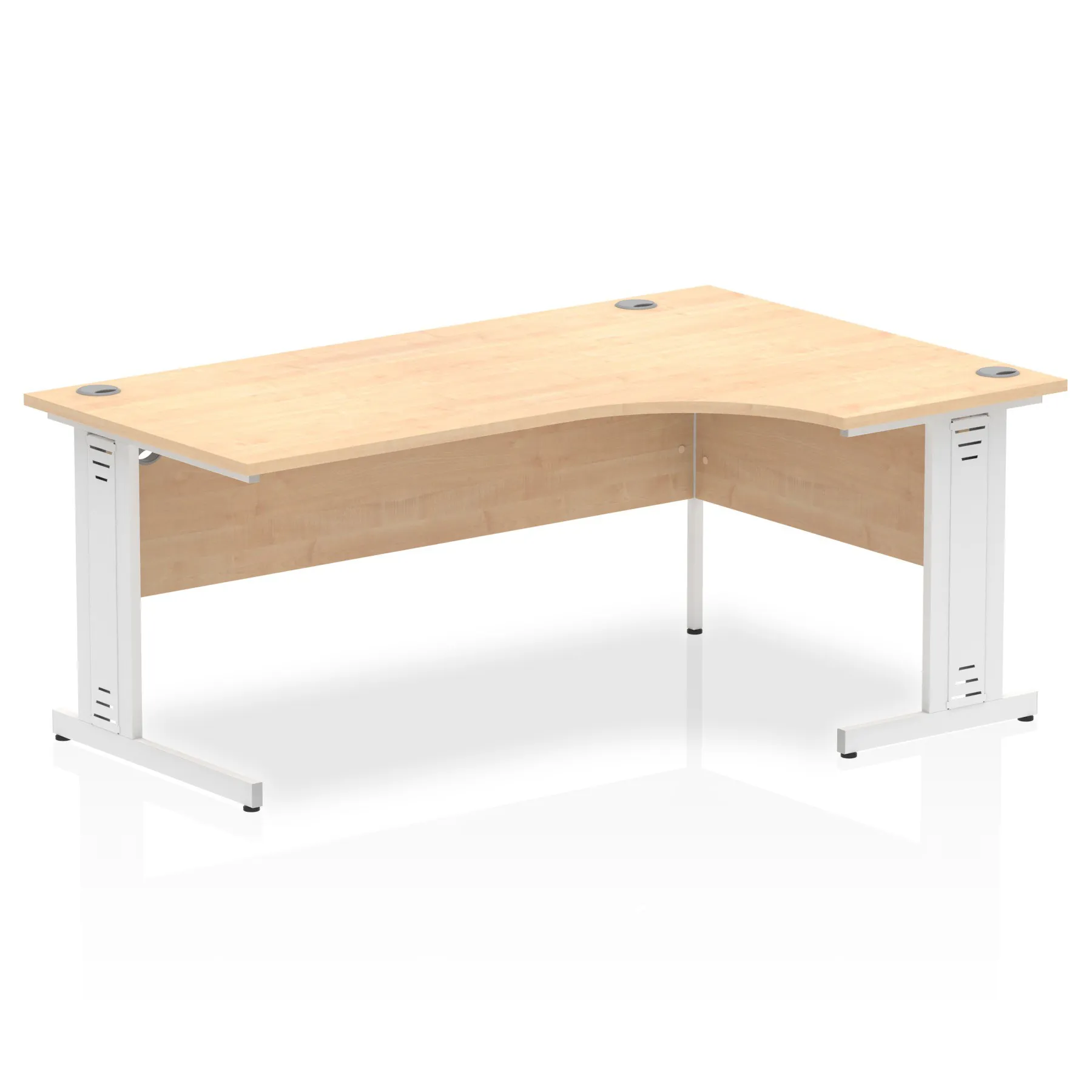 • Impulse contract 1800 wide crescent desk • 25mm tops • Heat resistant melamine finish • 18mm modesty panels • 2mm protective abs edging • Double strut legs • 3 cable ports • Height adjustable feet • Steel to steel fixings • 3 modesty panels slots • 600 deep • Deep set modesty panel (5″) allows for compatibility of most screen clamp fittings • Weight Capacity: 135Kg