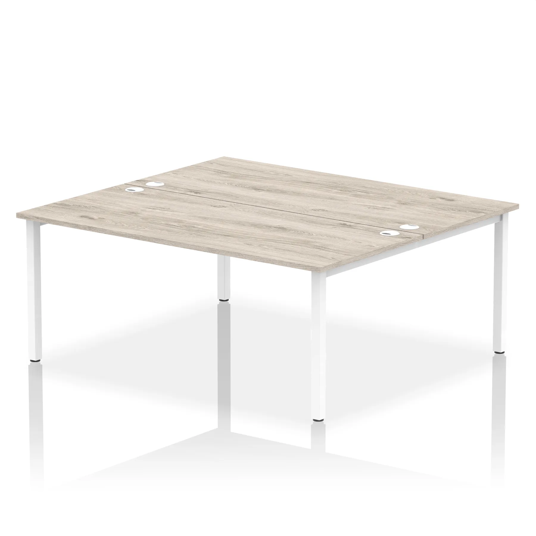• Conjoinable frame system allows for easy adaptability • Stylish powder coated goal post leg design • Double cable ports for easy cable management • 25mm thick tops with 2mm protective edging • Adjustable Feet • Choice of 7 wood finishes and 3 leg colours • Weight Capacity: 100kg per user