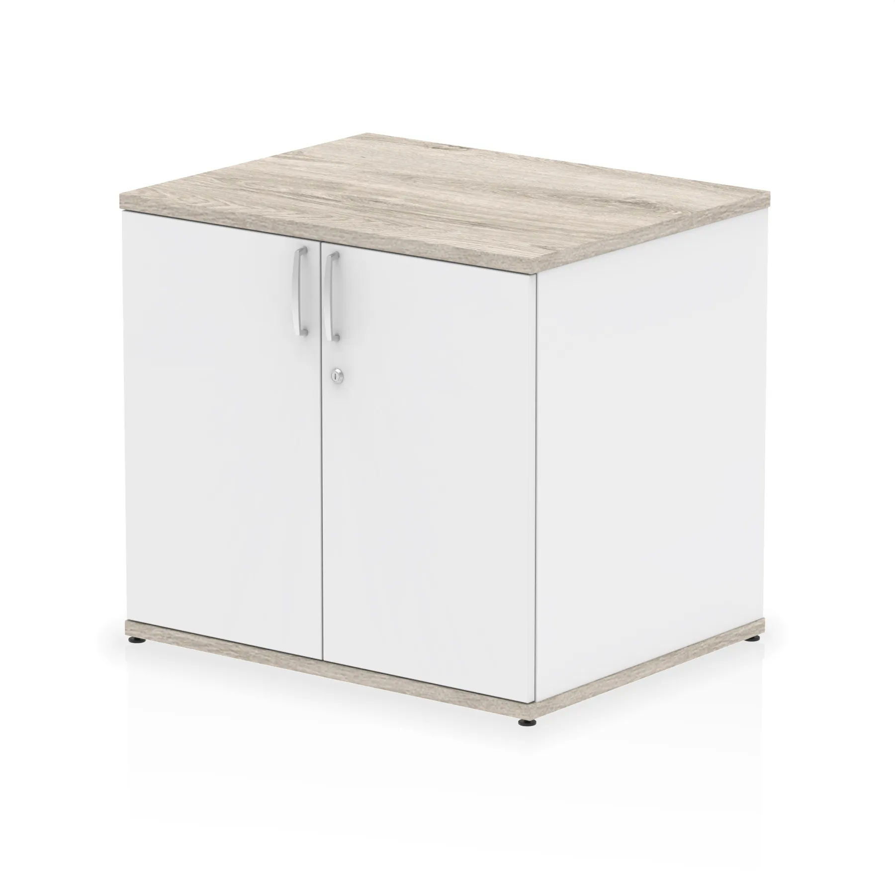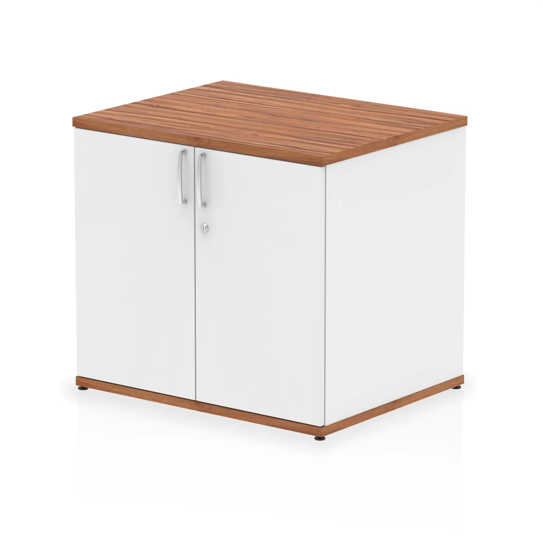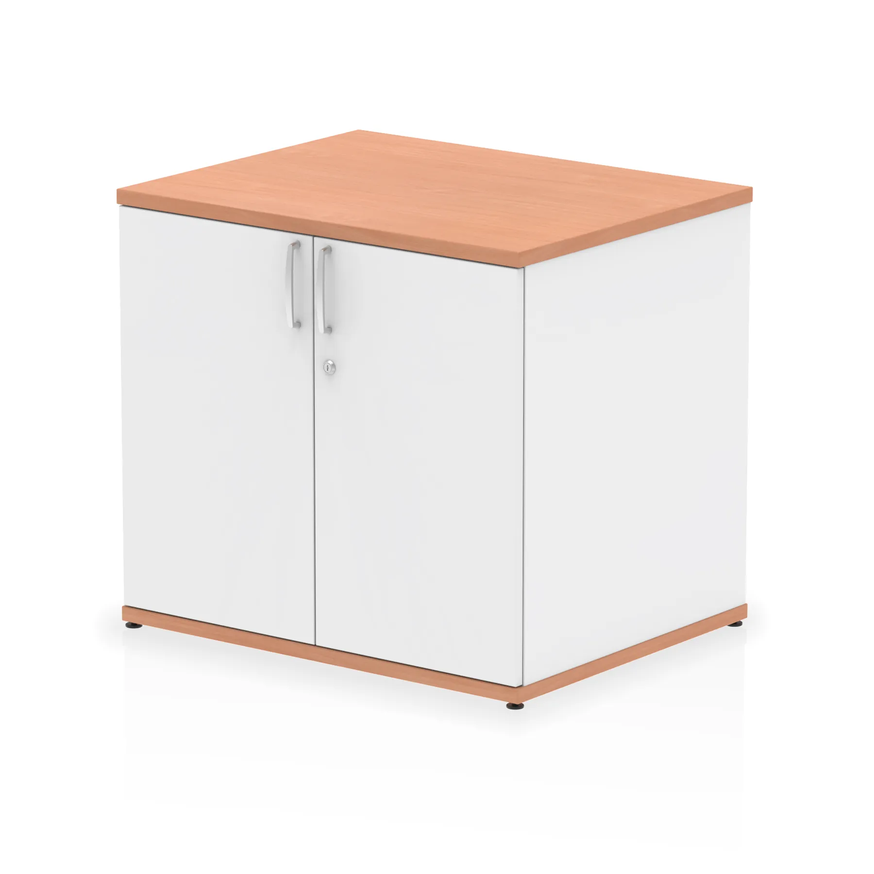 Impulse 800 wide cupboard | 25mm thick wood finish | Fits on end of 600 deep desk | 2mm abs protective edges | Steel to steel fixings | 18mm side walls | Adjustable shelf | Adjustable feet | Heat resistant melamine finish | Solid back board | Matching doors | Weight Capacity: 20Kg per shelf