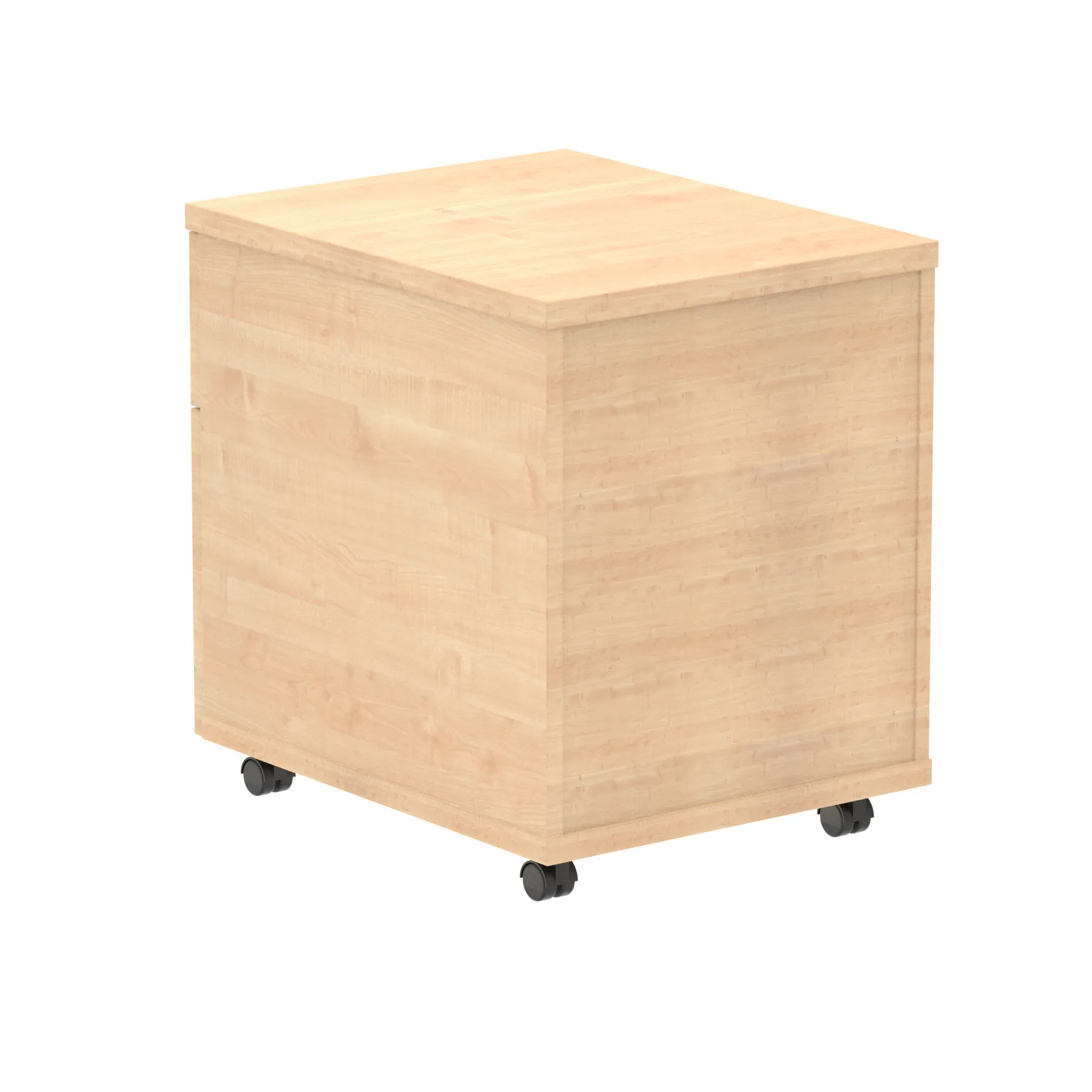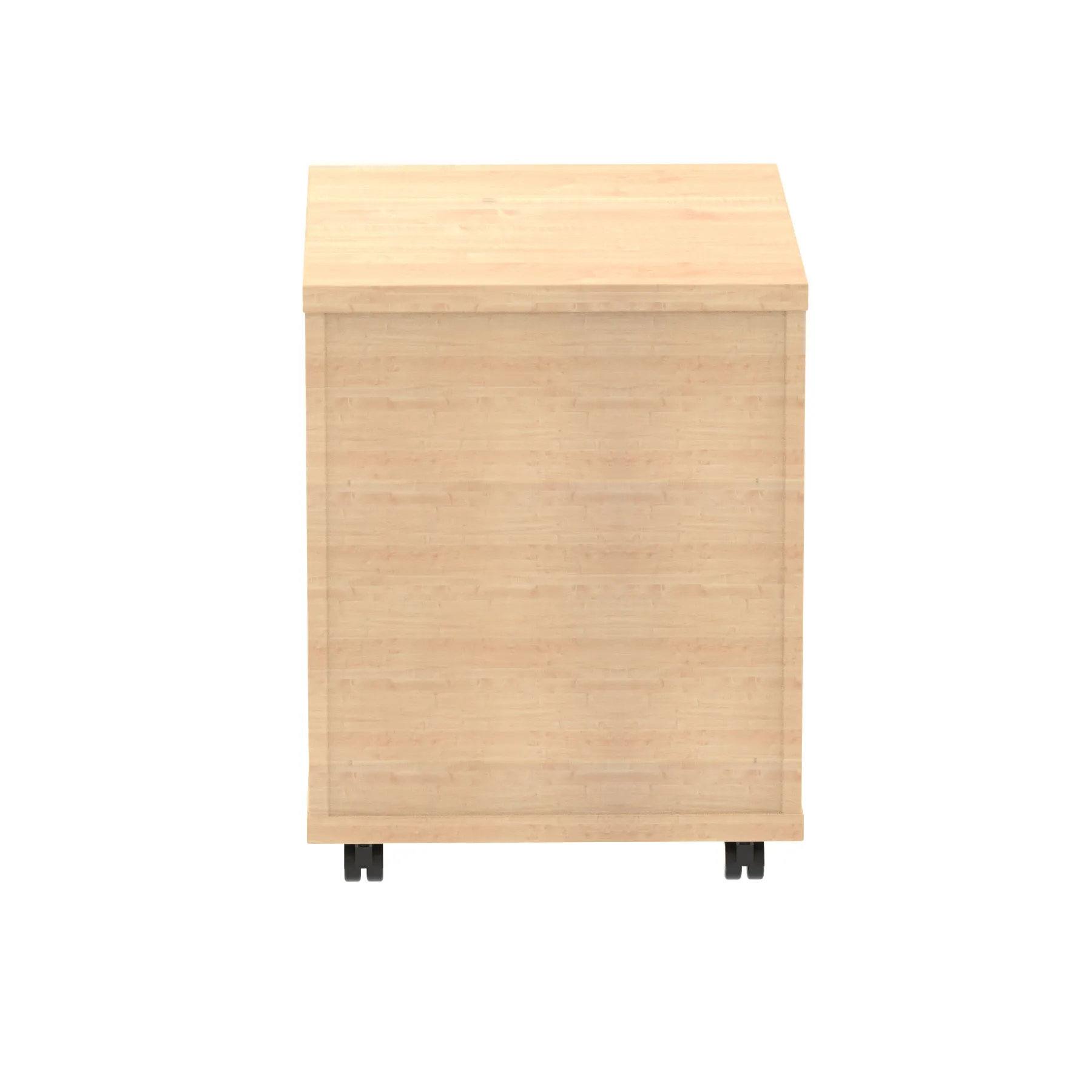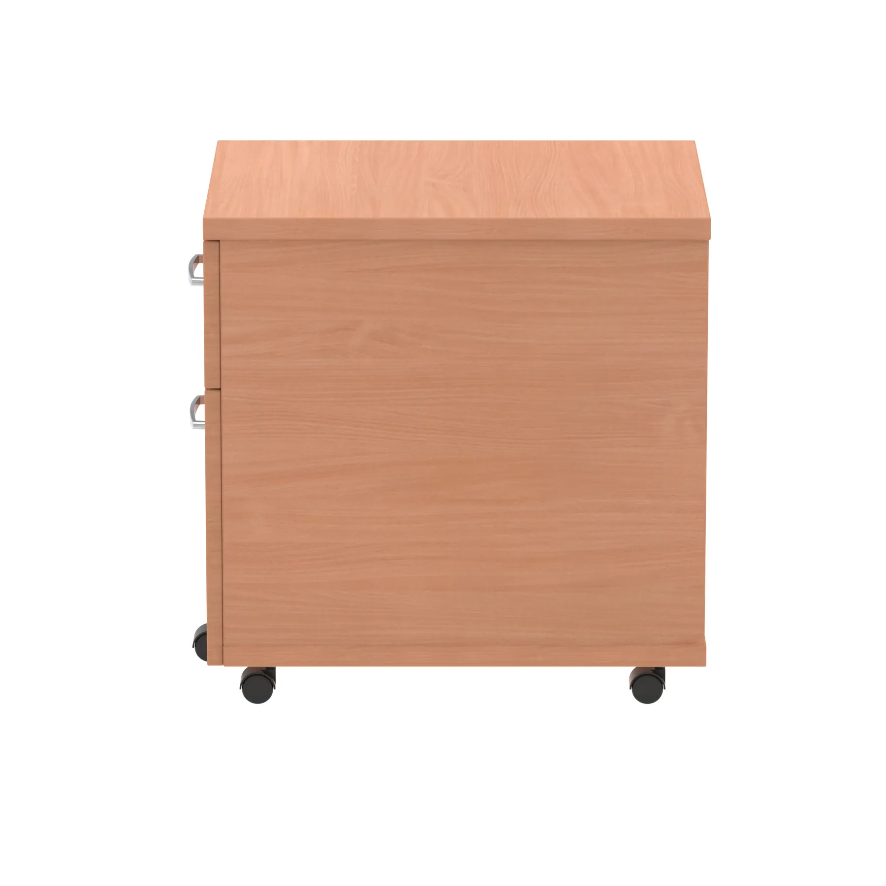 Impulse mobile pedestal | 25mm top | Full 18mm back board | 2mm abs protective edges | Steel handles | Solid box drawer construction | Fits A4 filing (Filing rails only available on the 2 drawer variant) | Smooth running castors for mobility | Steel to steel fixings | Lockable drawers | Heat resistant beech melamine finish