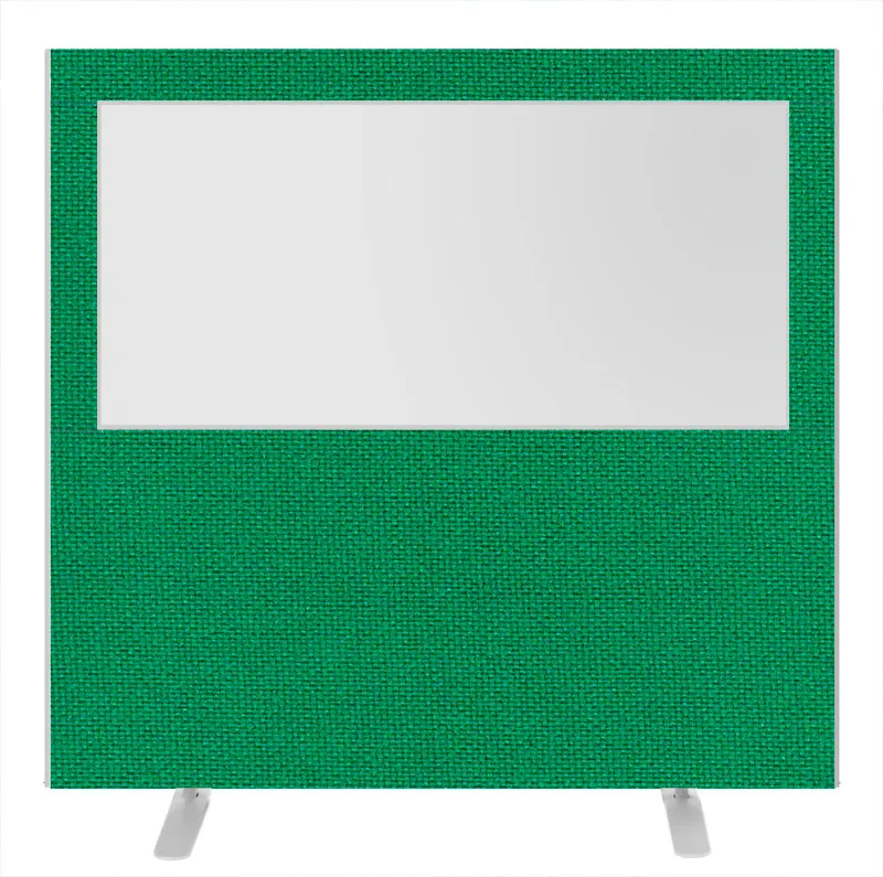 Clear acrylic shatter-proof vision panels | Gives an overview of office or public areas | uPVA protective edge trim | Flame retardant fabric to BS476-Part 7, class 1 | Combustion modified foam as standard | Wood and MDF sub frame for strength