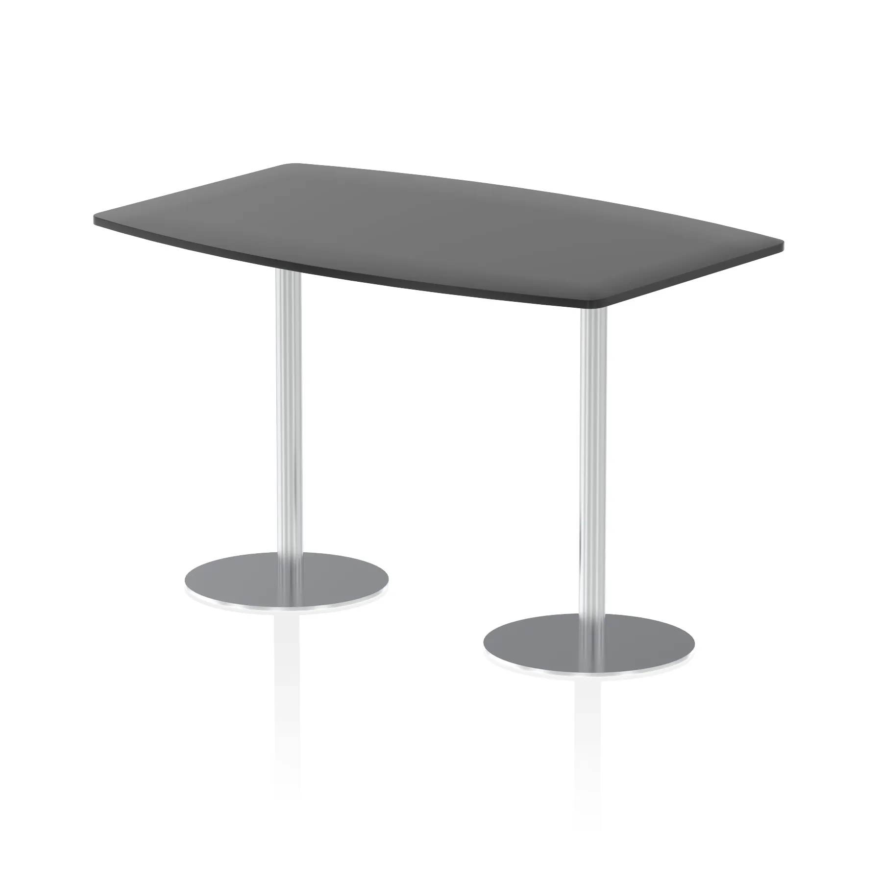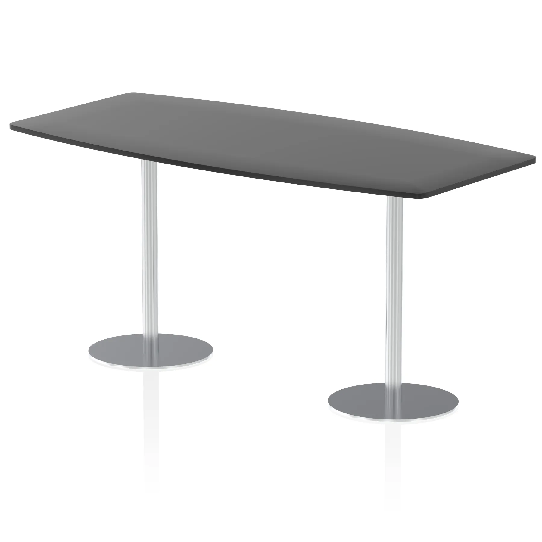 Italia is the ultimate style statement – whether for meetings, conferences, boardrooms or dining areas. This table is topped by a spectacular writeable/wipe clean hi-gloss boat-shaped top. Underneath the brushed steel trumpet base and post design looks striking and has the practicality of eliminating any knee and leg traps underneath.