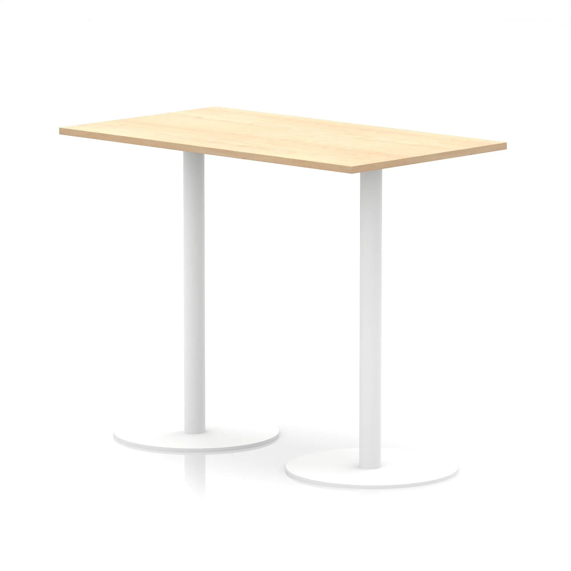 25mm thick desk top profile | Dual, brushed stainless steel effect circular base (580mm diameter) | Brushed stainless steel pillars (76mm diameter) | Weighted base provides stability | Two part bolted frame system