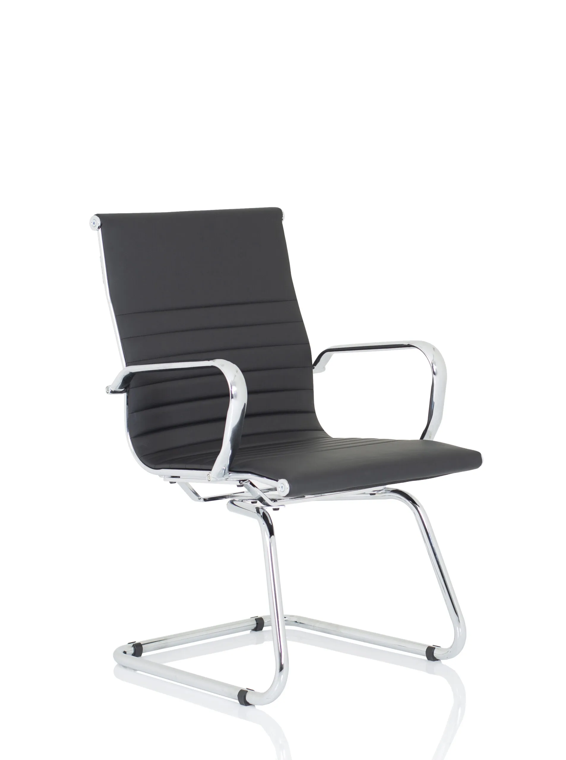 • Cushioned one piece seat and backrest • Stylish upholstery design • Matching chrome armrests and cantilever frame • ANSI/BIFMAX 5.1-2017 Strength and Endurance tested