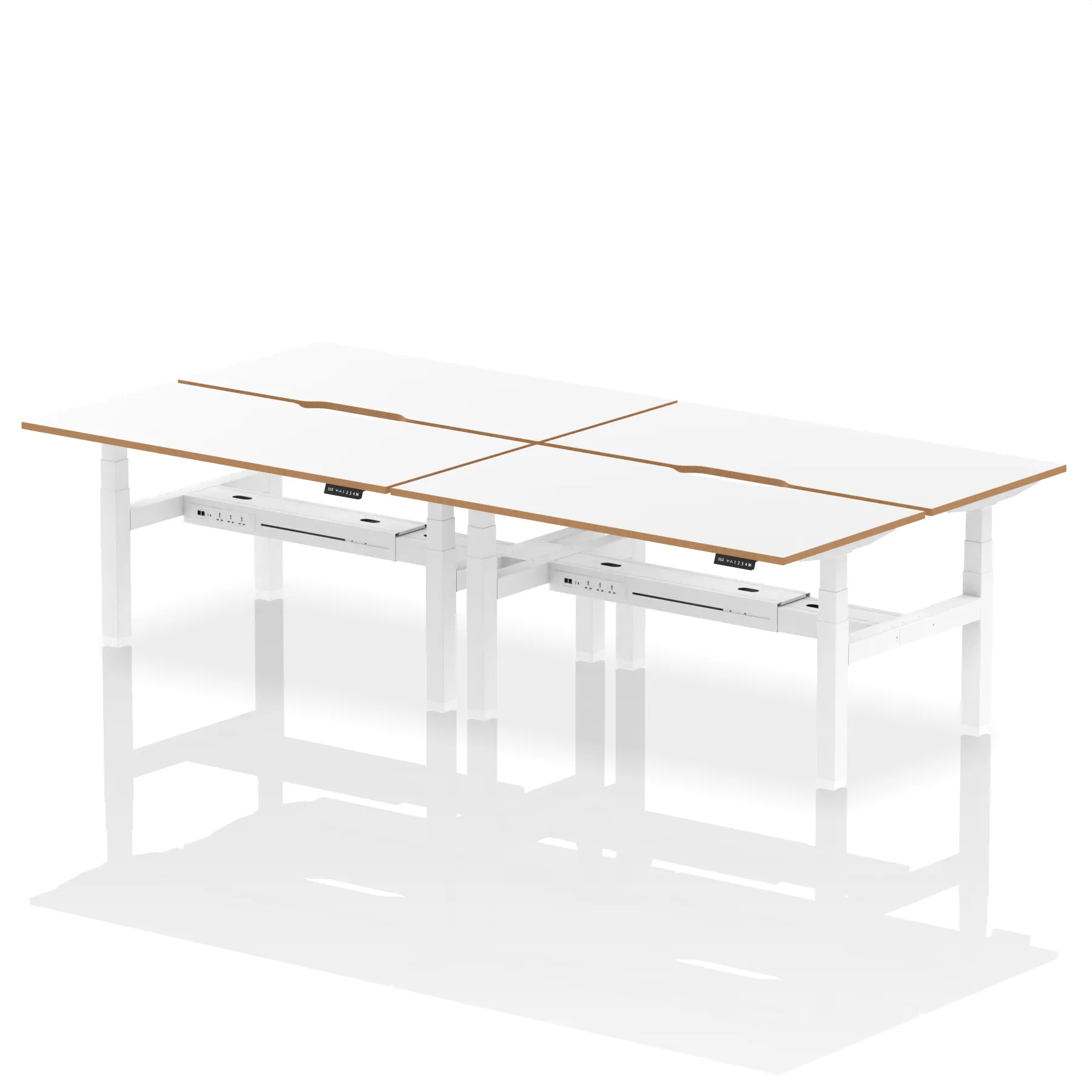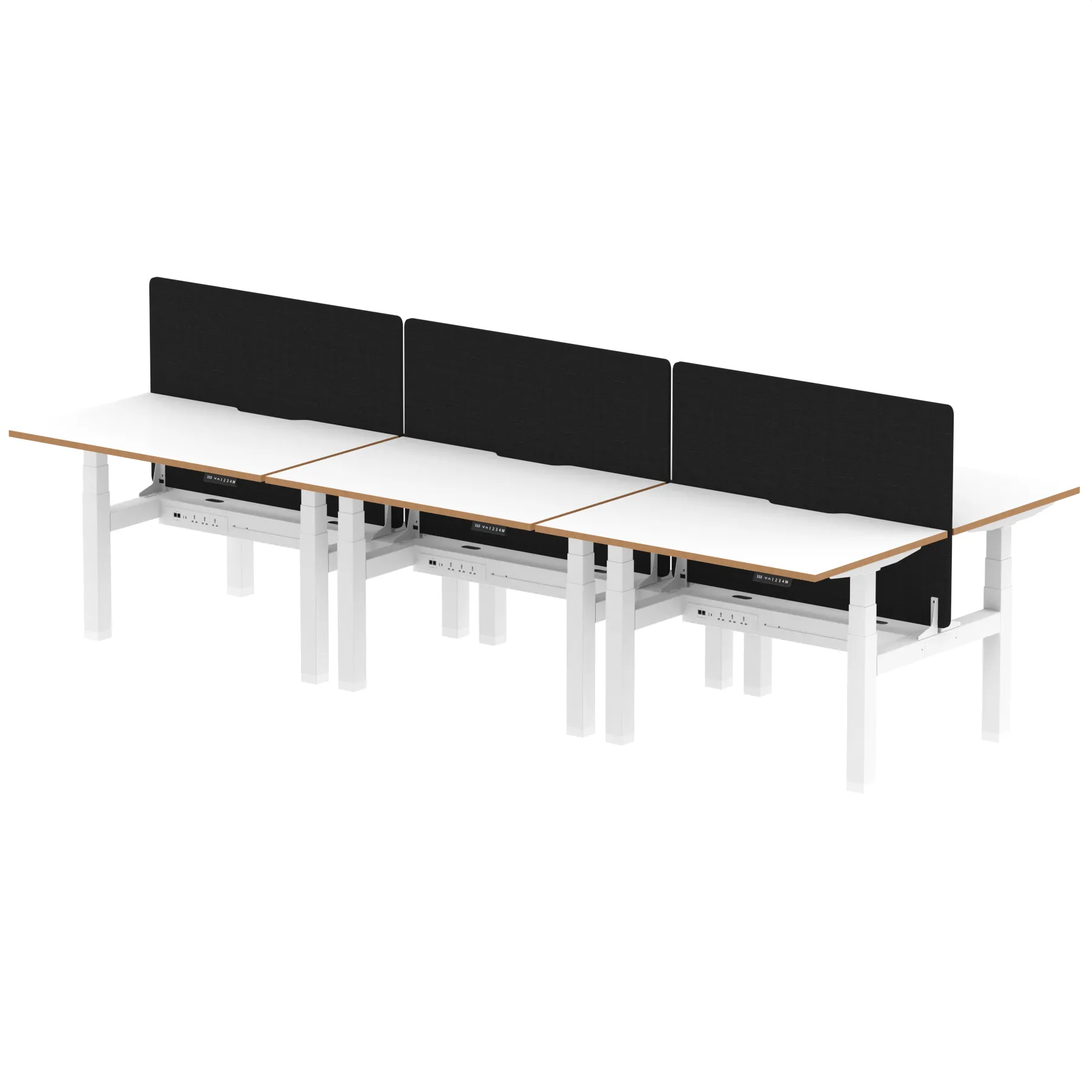 Elevate your office with the Air Back-to-Back Height Adjustable Desk, a blend of ergonomics and connectivity. Each desk includes two Ethernet ports, a USB and USB-C port, and three UK plugs, complemented by integrated cable ports for a clean setup. The addition of a straight screen offers privacy and focus. This desk is a perfect match for professionals seeking a tidy, tech-friendly, and adaptable workspace.