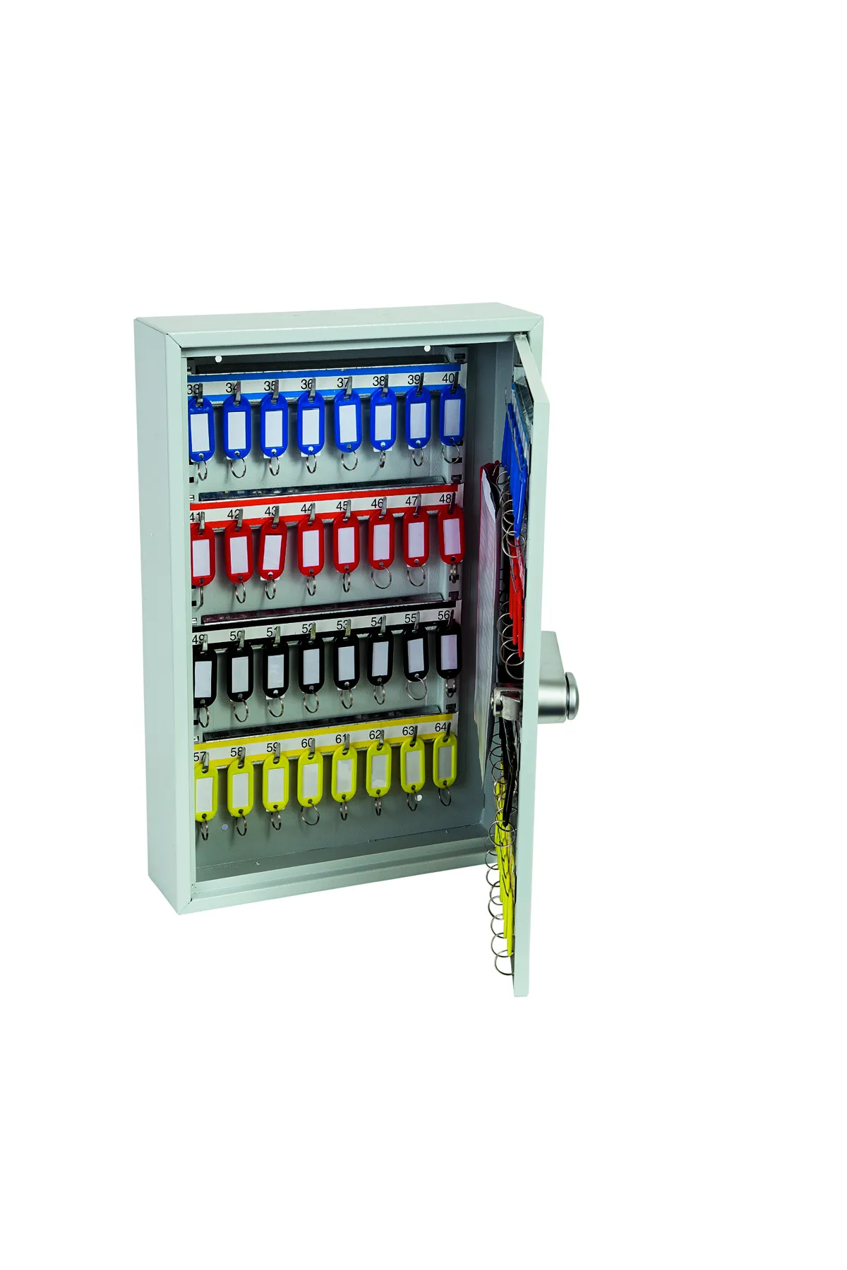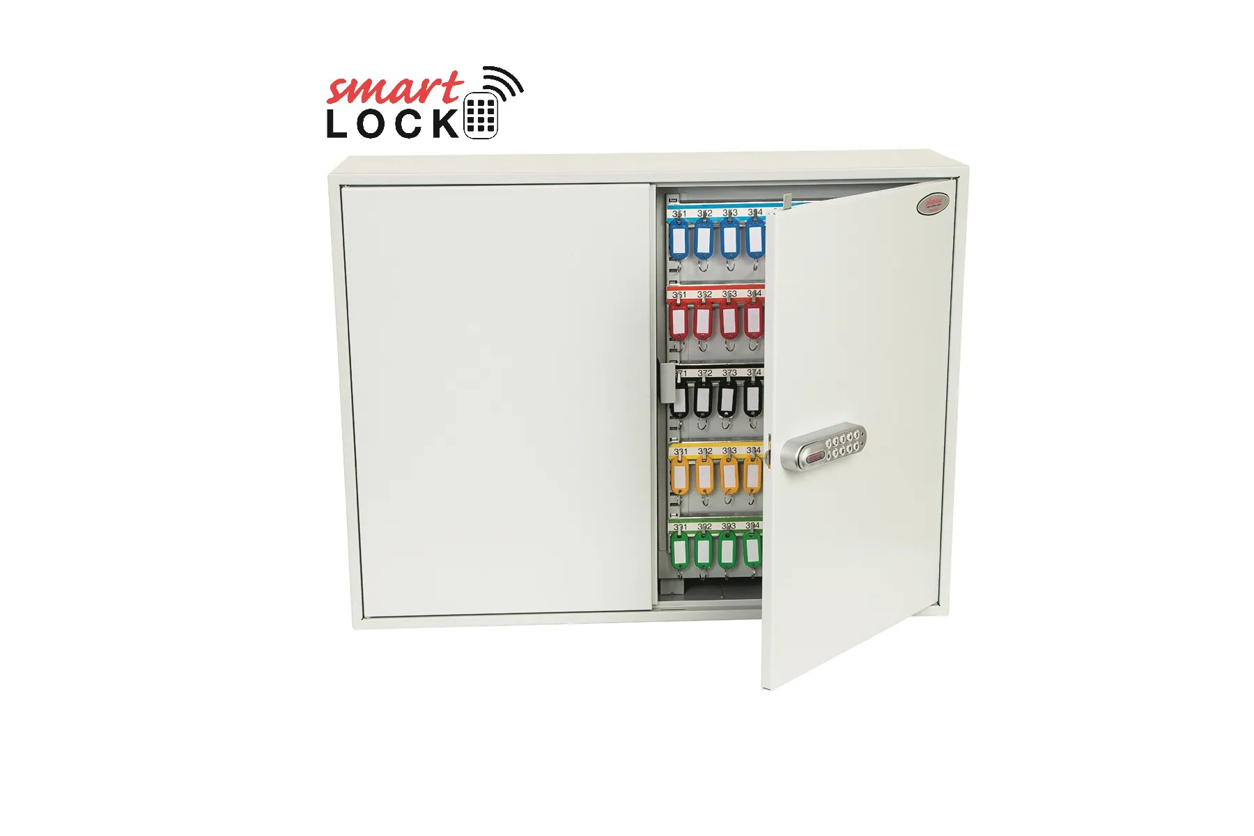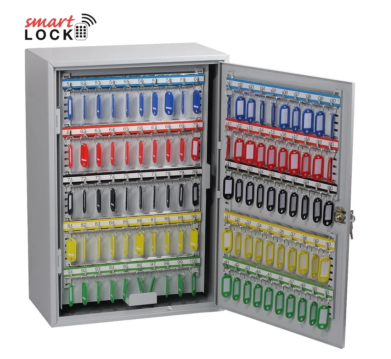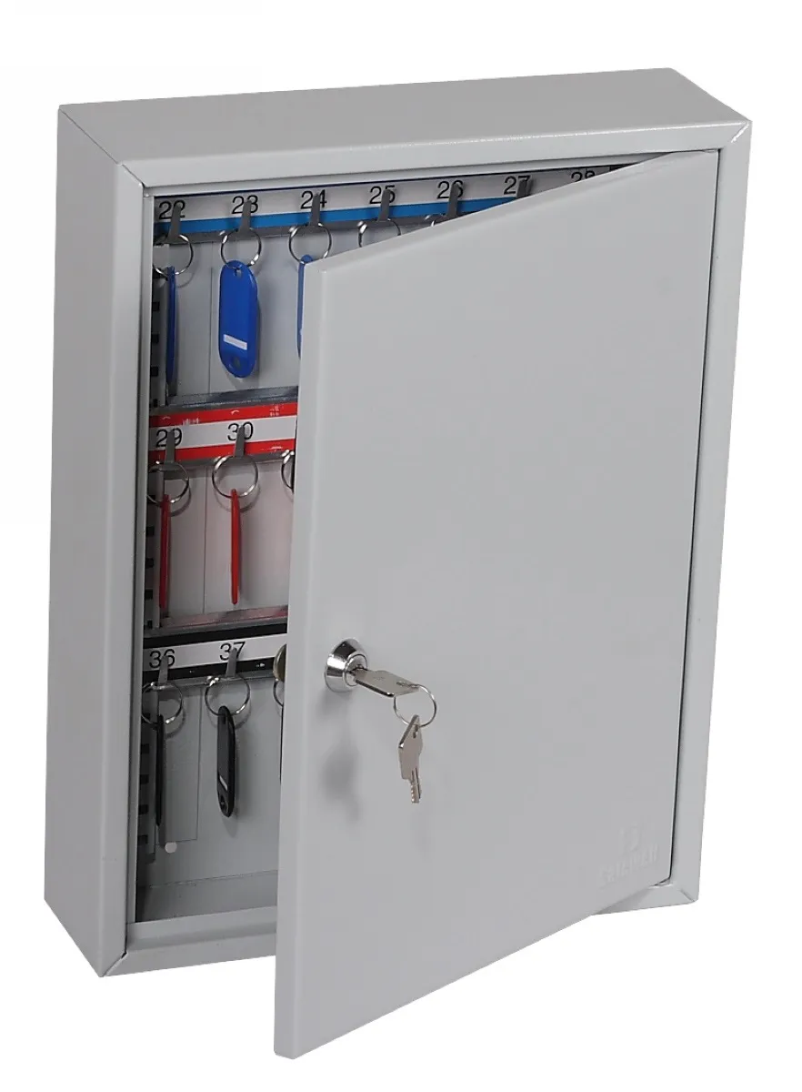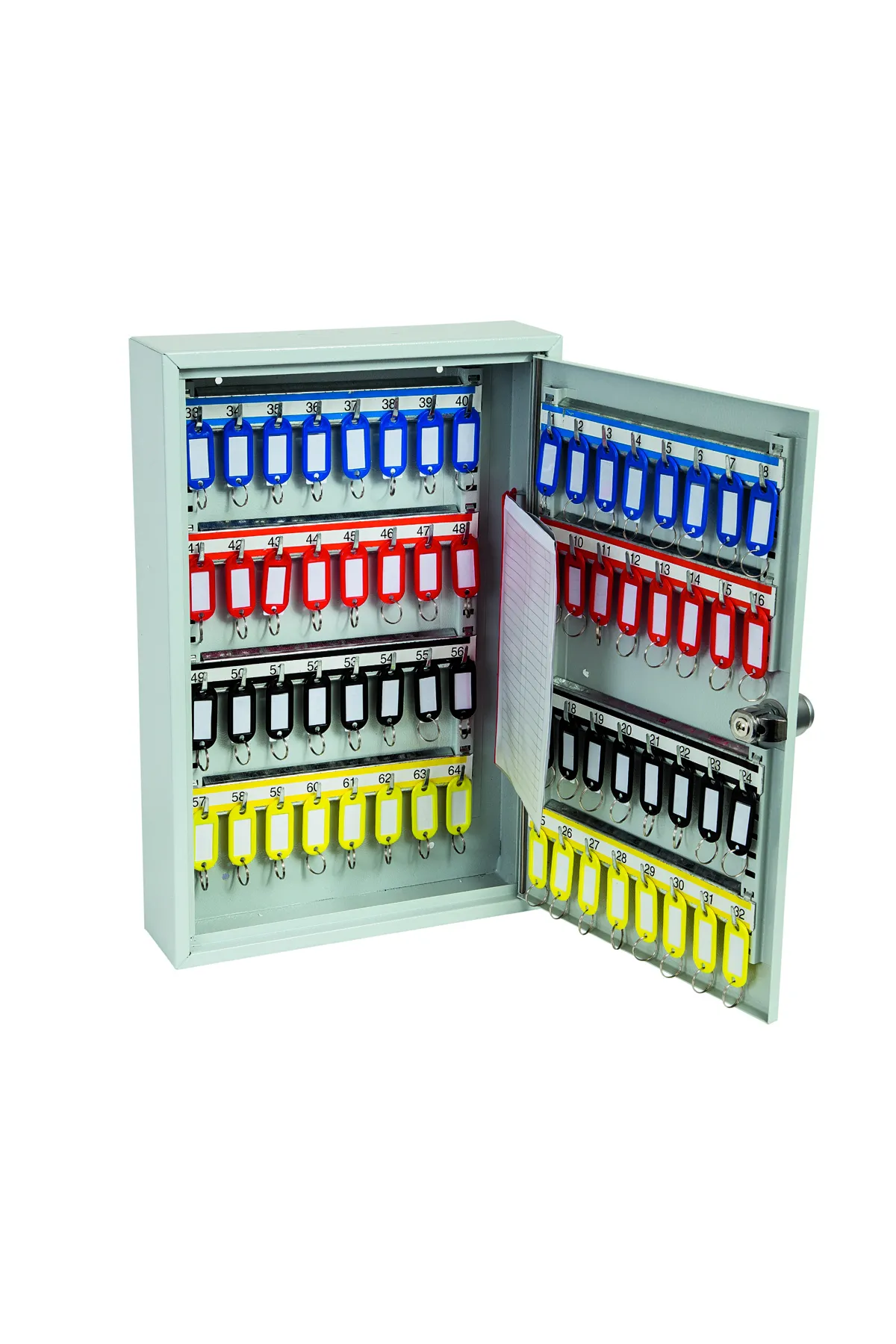 NO. OF KEY HOOKS – 42, 64, 100, 200, 300, 400 or 600 | SPECIAL FEATURES – Each unit comes with adjustable hook bars and number labels to suit. | FIXING – The cabinets have pre-drilled fixing holes for wall mounting and bolts supplied | FINISH – Finished in a high quality durable powder coated finish