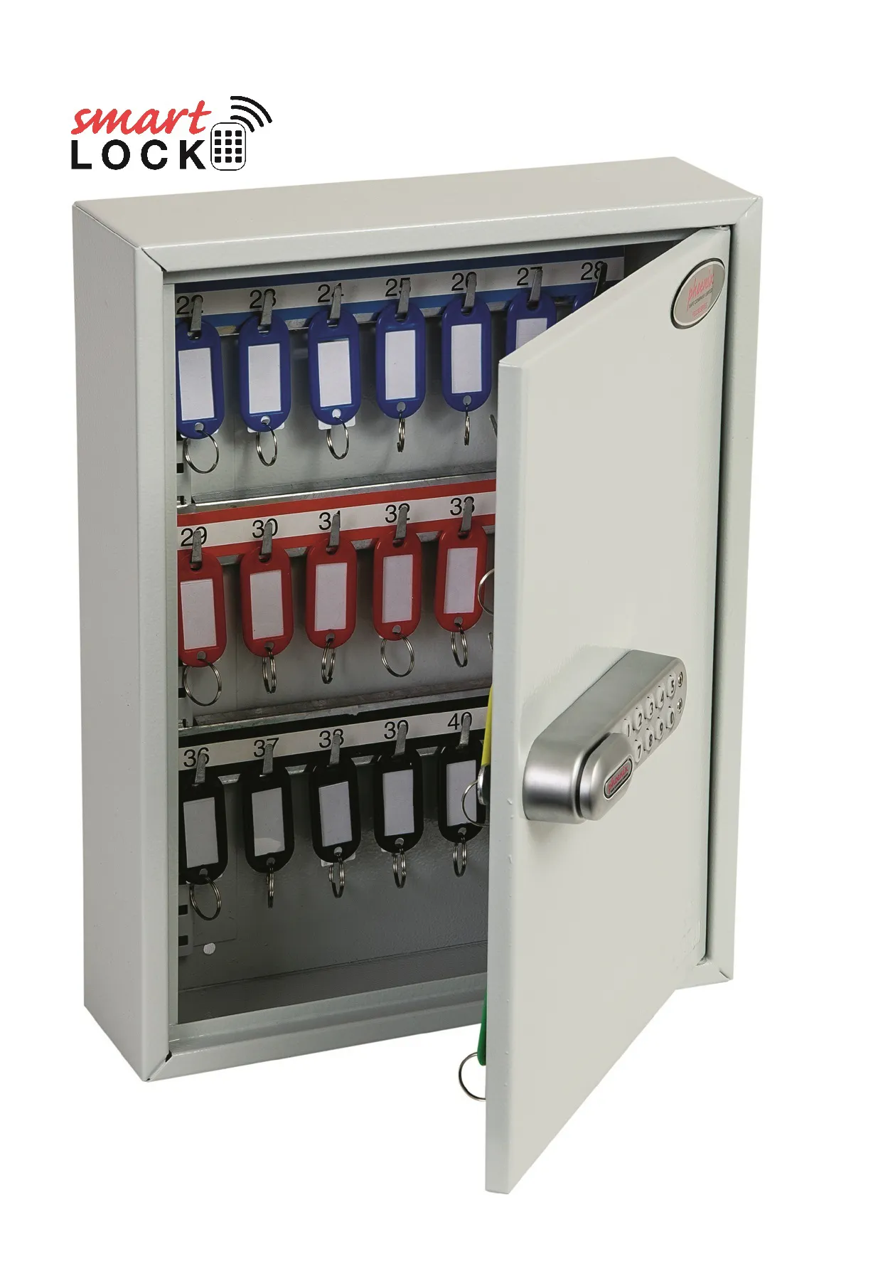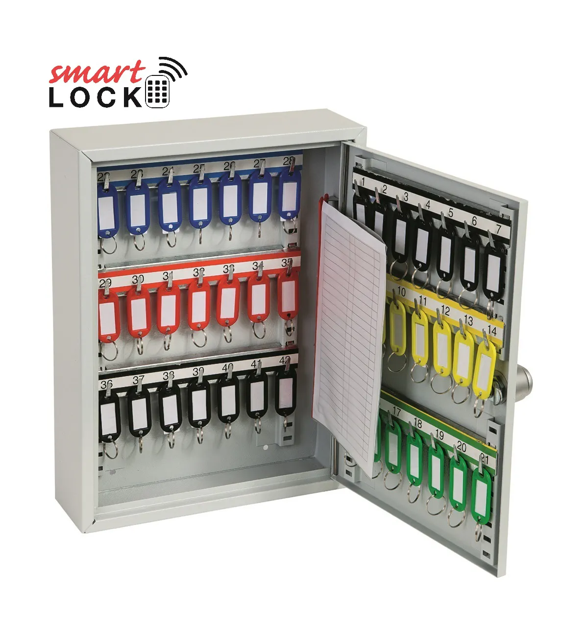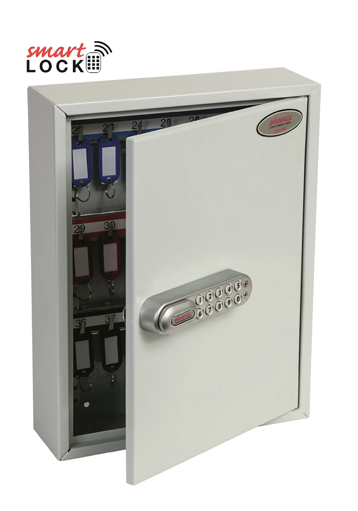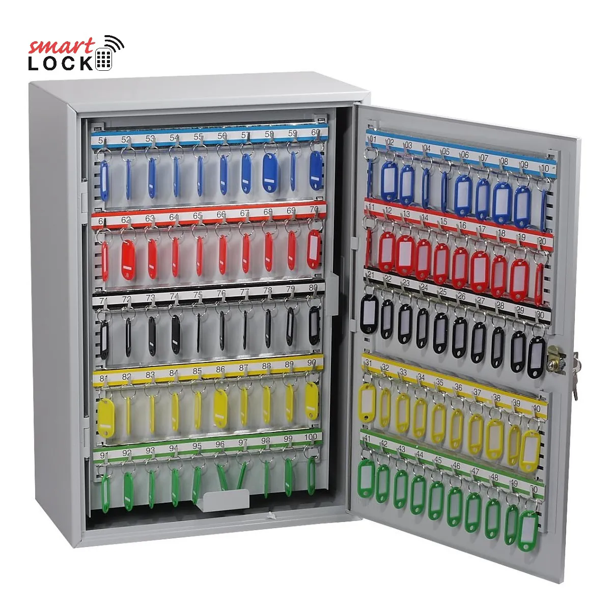 NO. OF KEY HOOKS – 42, 64, 100, 200, 300, 400 or 600 | SPECIAL FEATURES – Each unit comes with adjustable hook bars and number labels to suit. | FIXING – The cabinets have pre-drilled fixing holes for wall mounting and bolts supplied | FINISH – Finished in a high quality durable powder coated finish