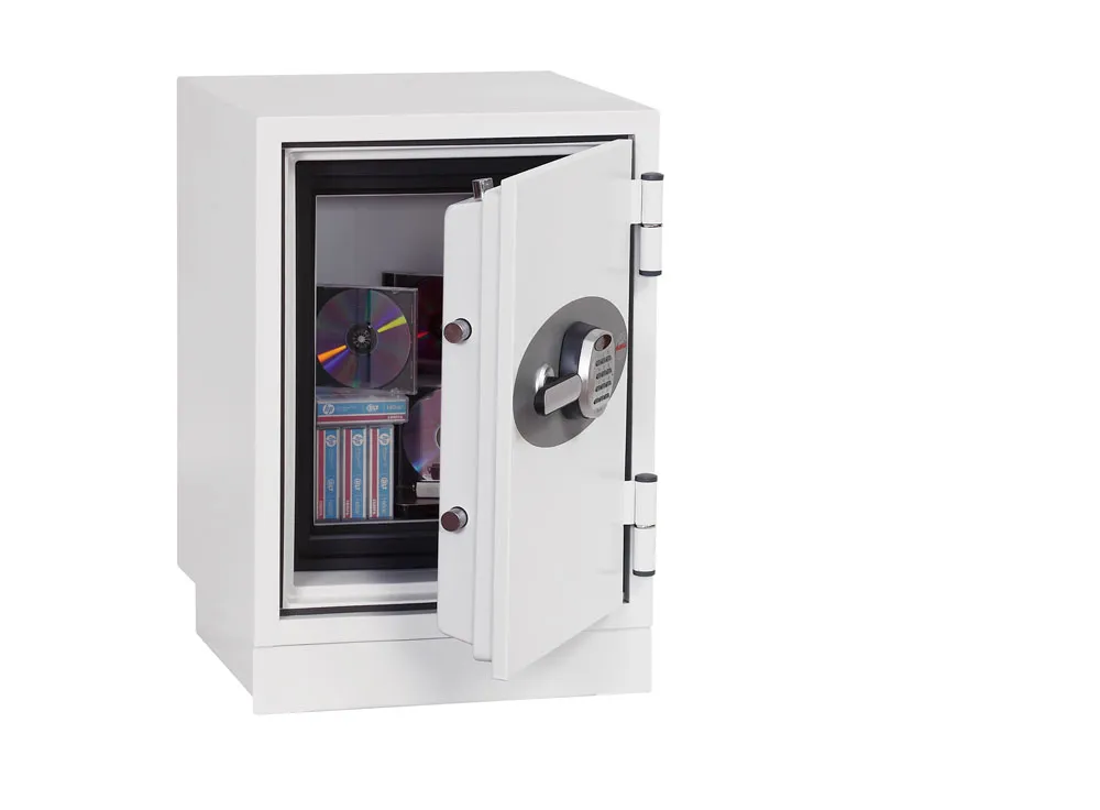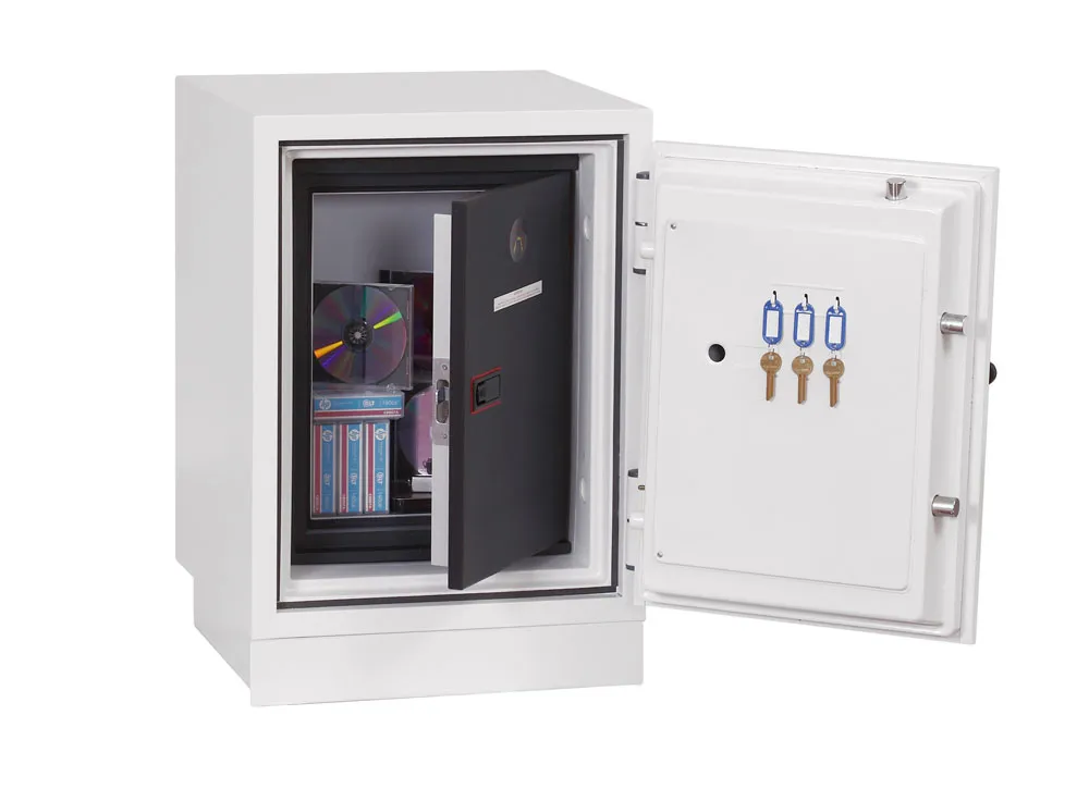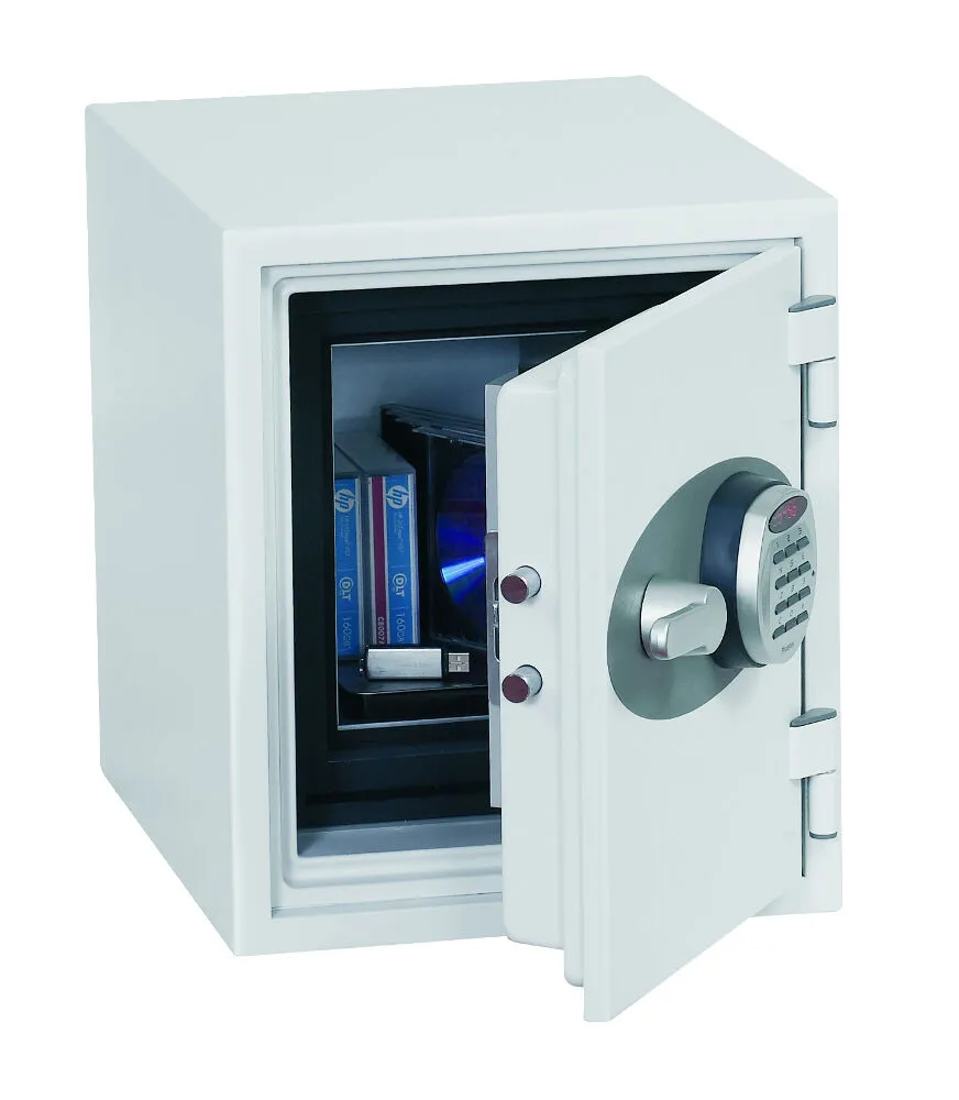FIRE PROTECTION (DATA) – Tested to Swedish NT Fire 017 – 60dis (Size 1), 90dis (Size 2) or 120dis (Size 3) standard, providing 60, 90 or 120 minutes fire protection respectively for computer backup tapes | WATER RESISTANCE – Twin water resistant seals provide an airtight water resistant inner compartment for your computer media | SECURITY PROTECTION – The safe is recommended for an overnight cash risk of £1,500.00 or £15,000.00 valuables | DROP TEST – Fire and impact tested from 9.1 metres for resistance to the impact of falling through the burning floors of a building | SPECIAL FEATURES – Fitted with 4 internal key hooks | COLOUR – Finished in a high quality scratch resistant paint RAL9003 White
