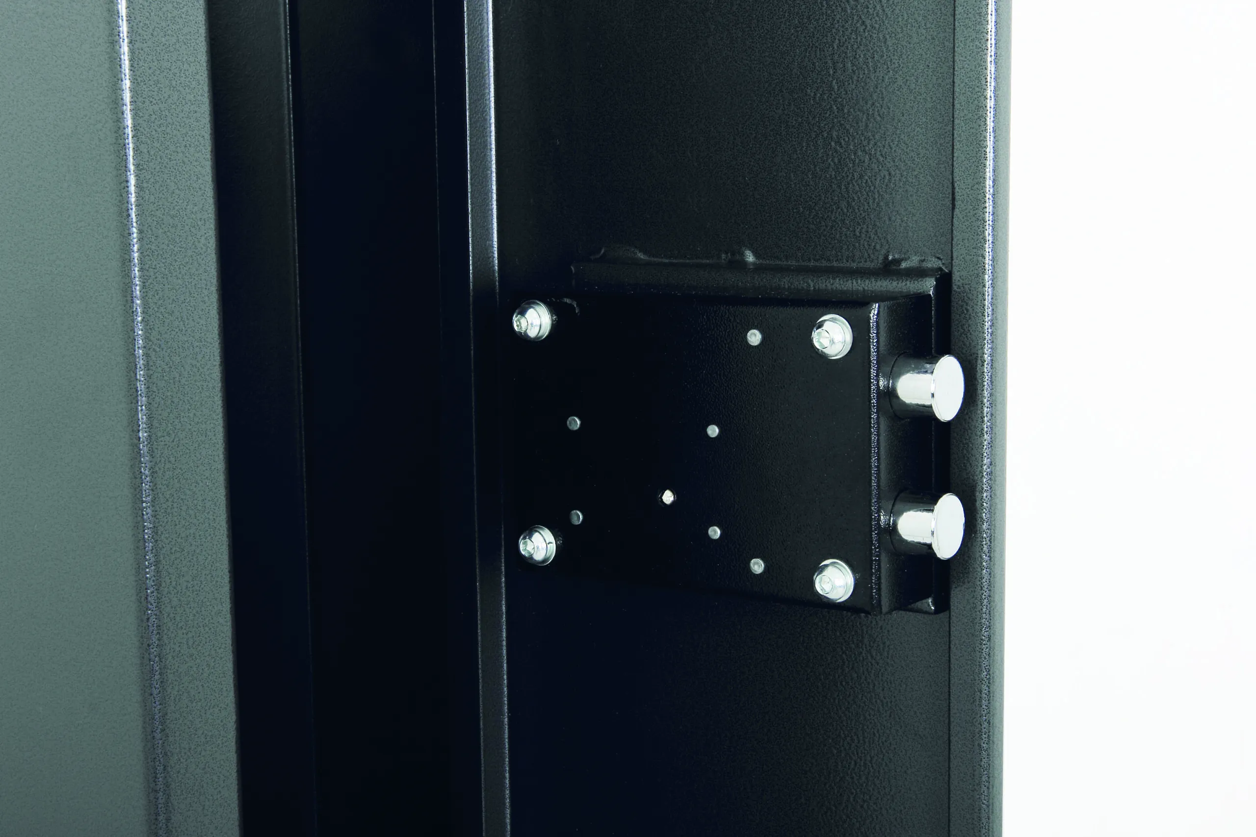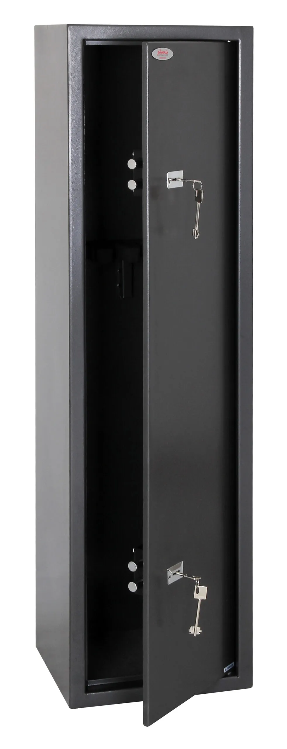 SECURITY PROTECTION – Tested to British Standard BS7558/92. 100% Police Approved | NO. OF GUNS – 1, 2 or 6 | LOCKING – Two high security 7 lever locks supplied with two double bitted keys | CONSTRUCTION – Galvanised steel body and door. High density foam divider and floor mat | FIXING – Ready prepared for fixing to the floor or wall, with fixing bolts supplied | COLOUR – Finished in a high quality durable Metallic Graphite paint.