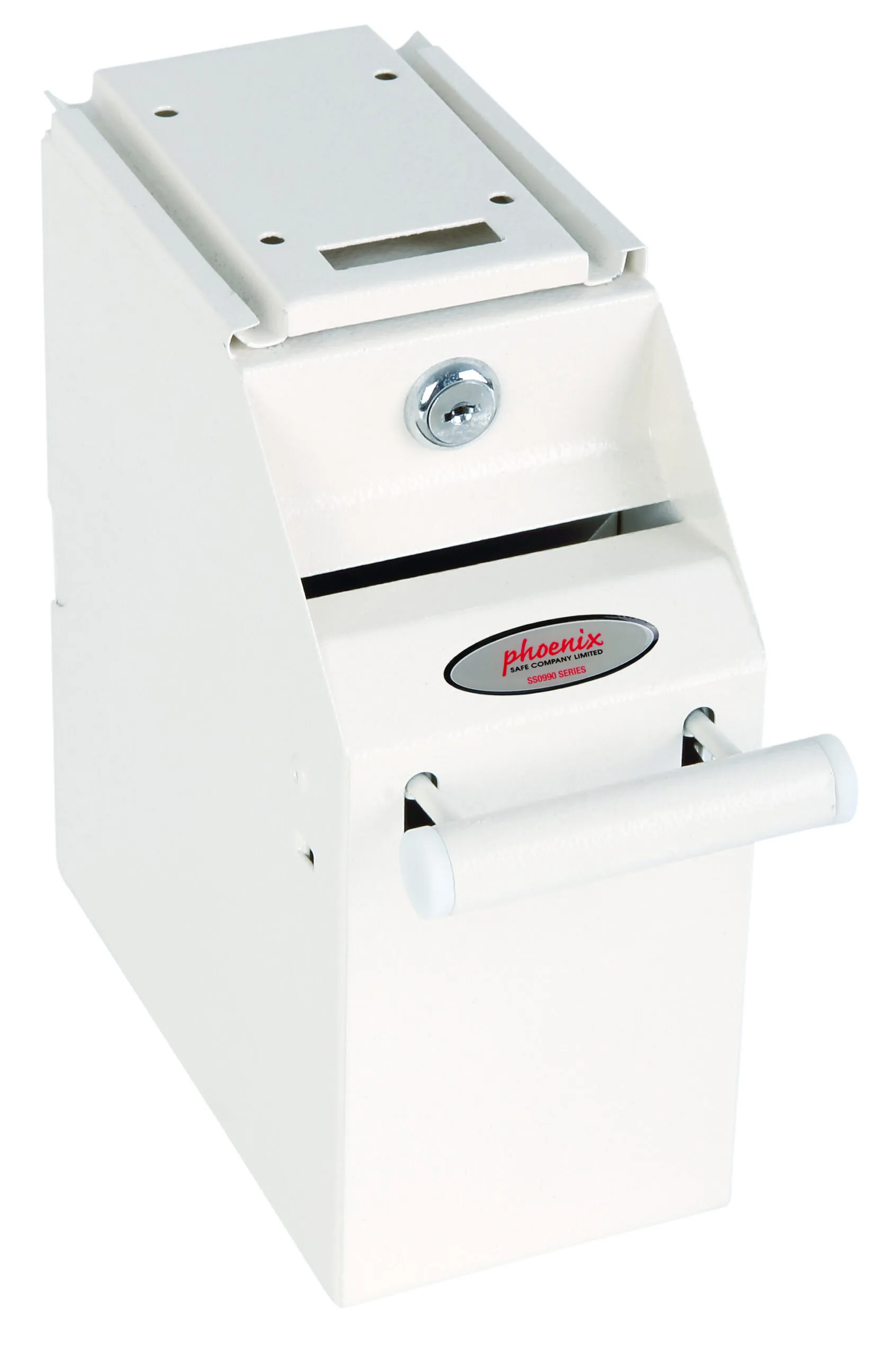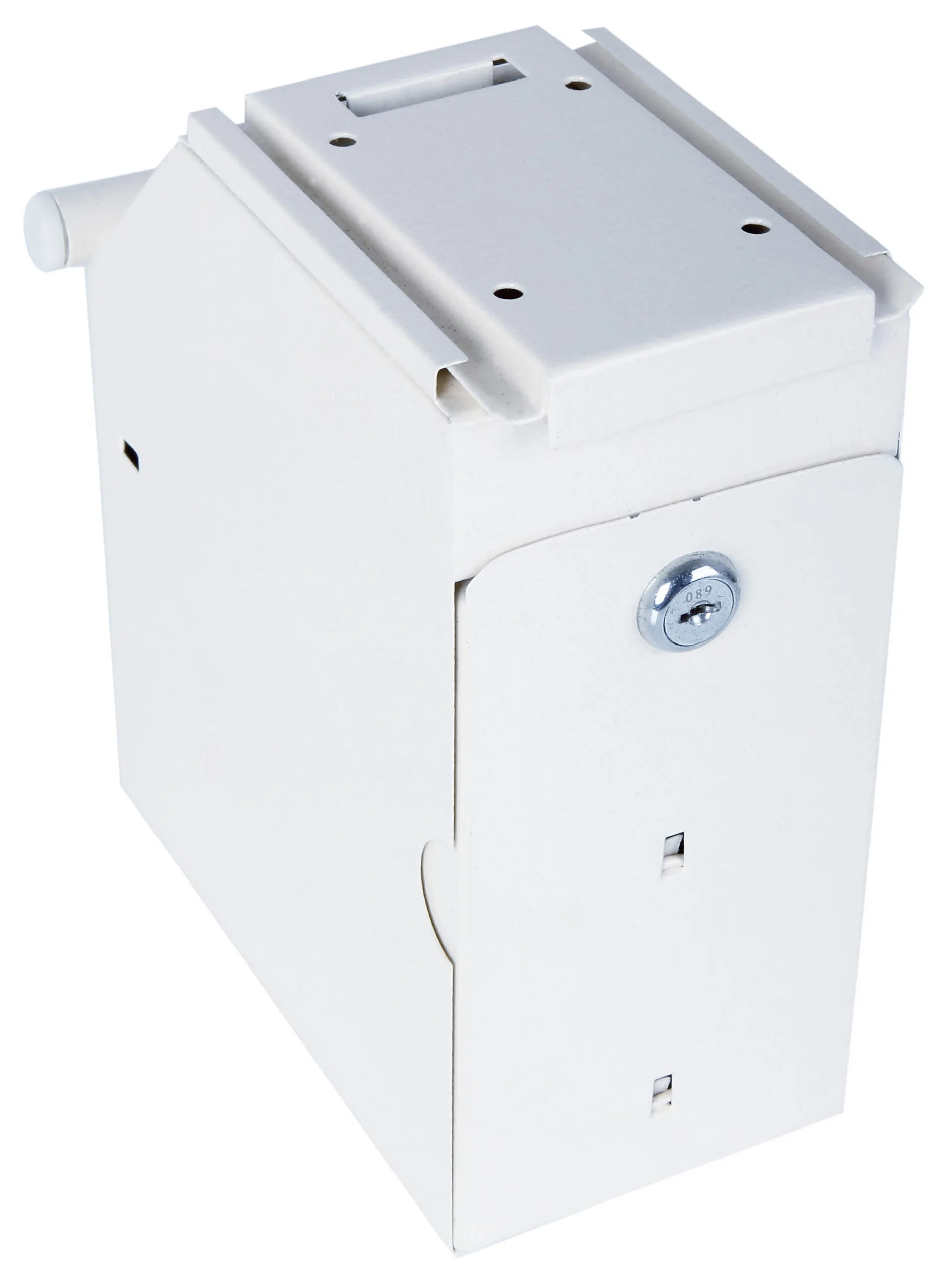LOCKING – Fitted with two key locks each supplied with two keys. One lock secures the unit to the base tray, the second lock releases the stored notes | DEPOSIT FACILITY – Note deposit facility (Not suitable for coins) | SPECIAL FEATURES – Under counter mounting plate with key release. Allows unit to be removed from the counter and emptied in a secure cash room. CONSTRUCTION – Constructed of solid steel plate | FIXING – Supplied with a fixing plate and fixings to secure to an under counter | COLOUR – Finished in a high quality scratch resistant White paint RAL9003.